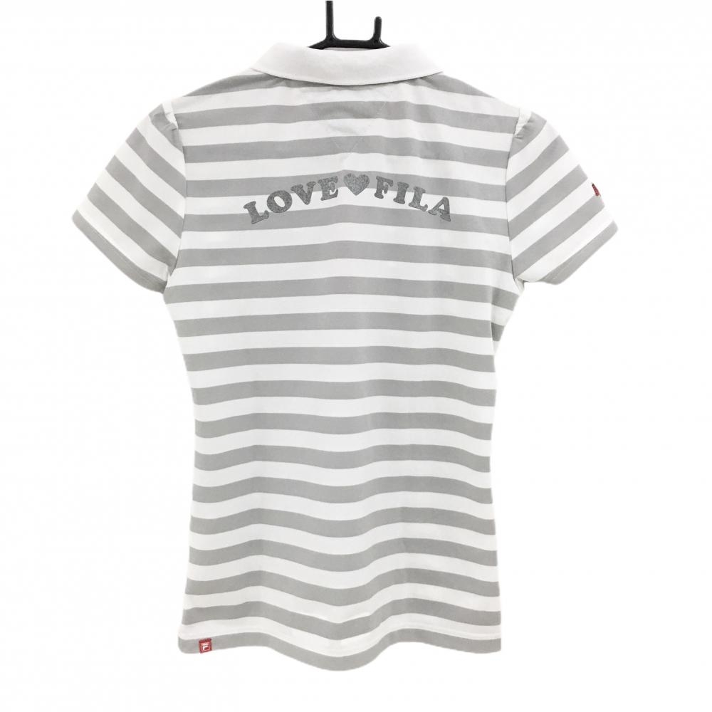 【美品】フィラゴルフ 半袖ポロシャツ 白×グレー ボーダー レディース L ゴルフウェア FILA GOLF