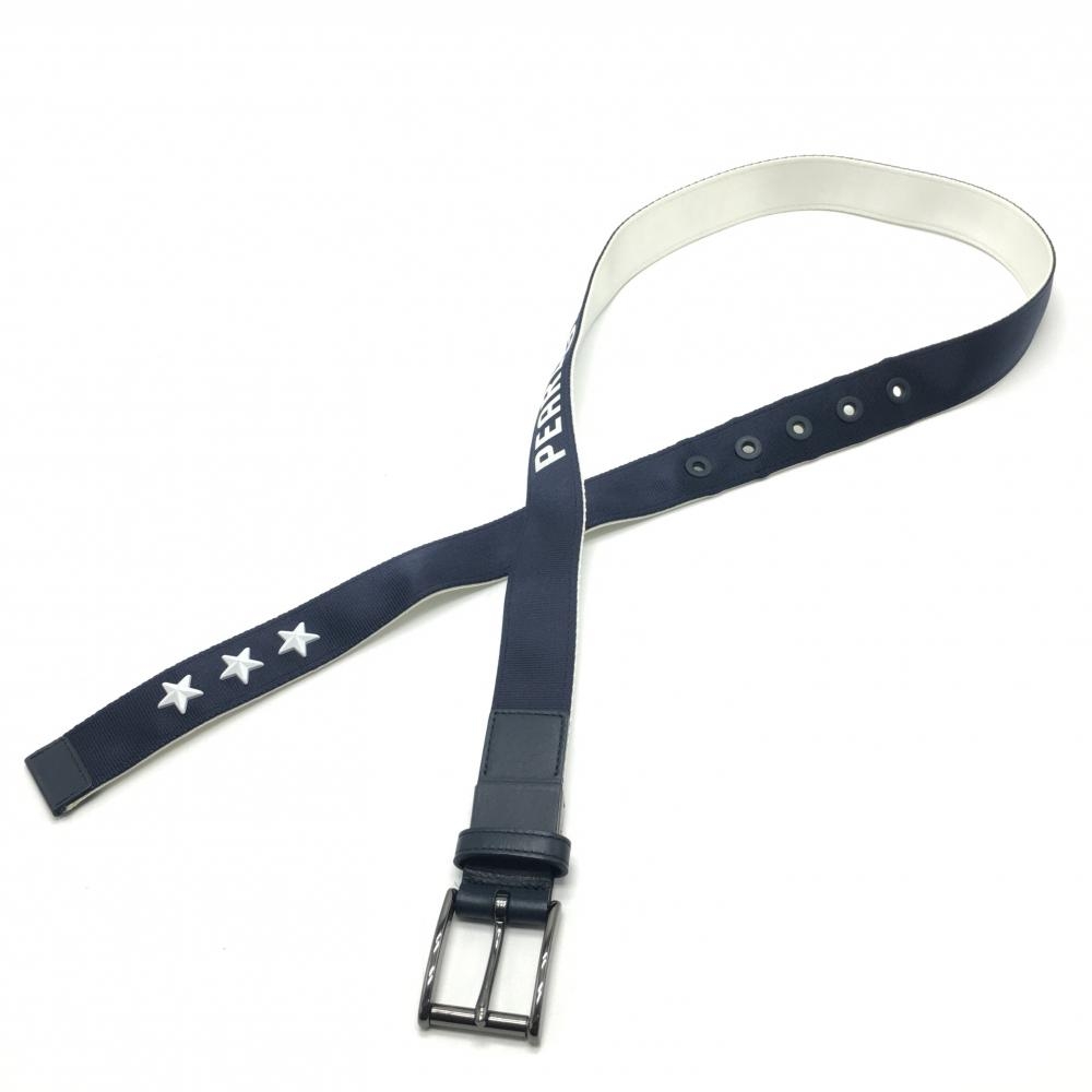 【美品】パーリーゲイツ ベルト ネイビー×白 ロゴプリント メンズ ゴルフウェア PEARLY GATES