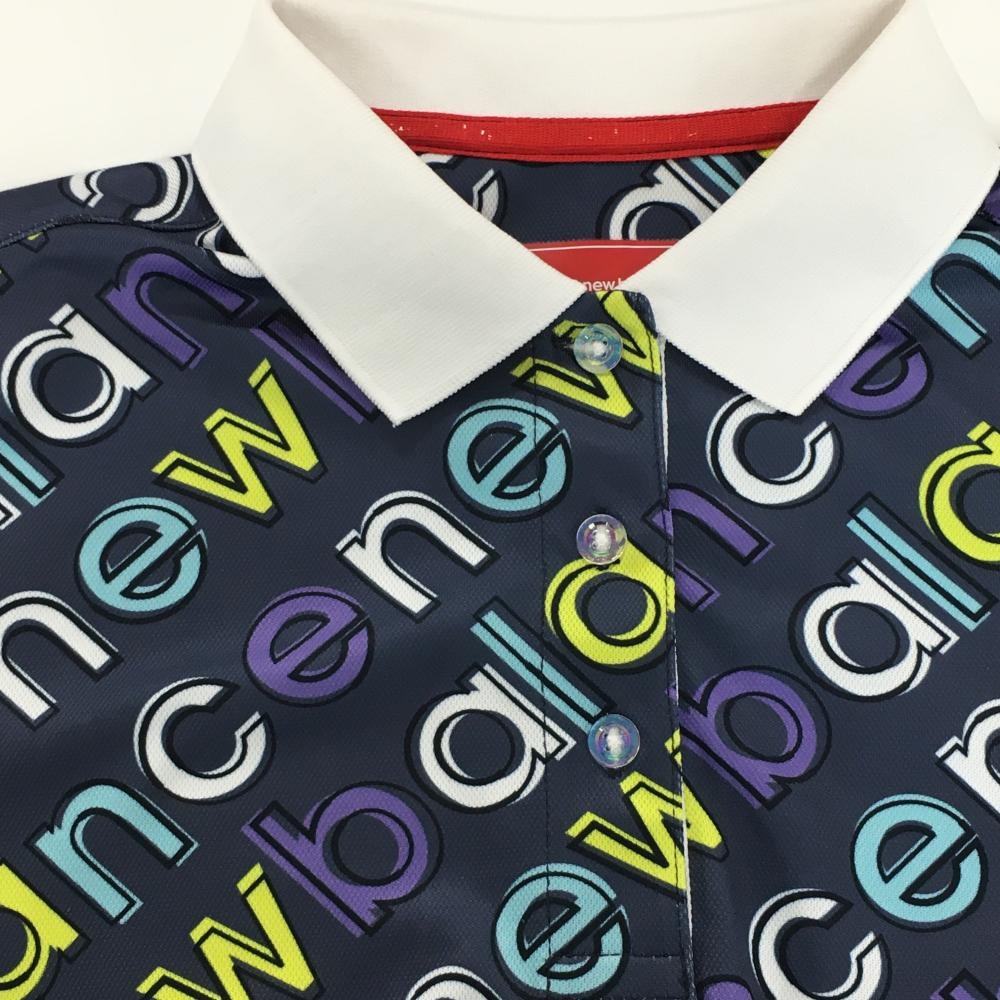 ニューバランスゴルフ 半袖ポロシャツ ネイビー計×ライトブルー×イエロー 英字ロゴ総柄 レディース 1(M) ゴルフウェア New Balance