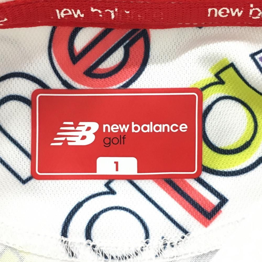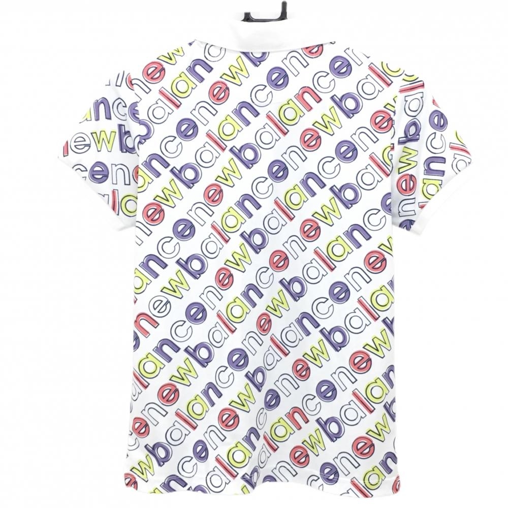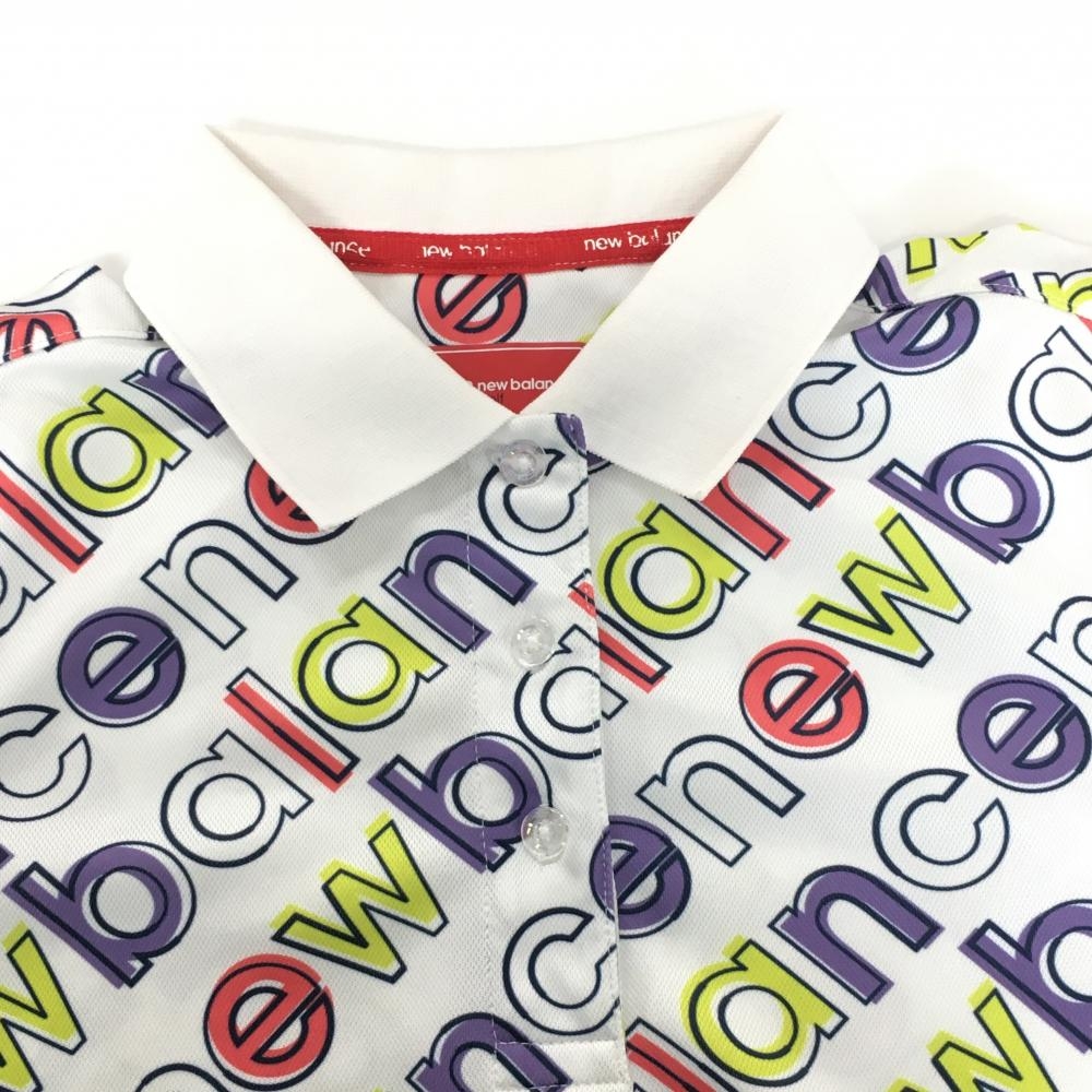 ニューバランスゴルフ 半袖ポロシャツ 白×パープル×ピンク 英字ロゴ総柄 レディース 1(M) ゴルフウェア New Balance
