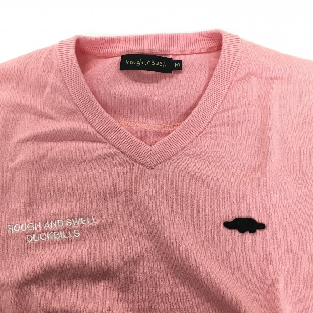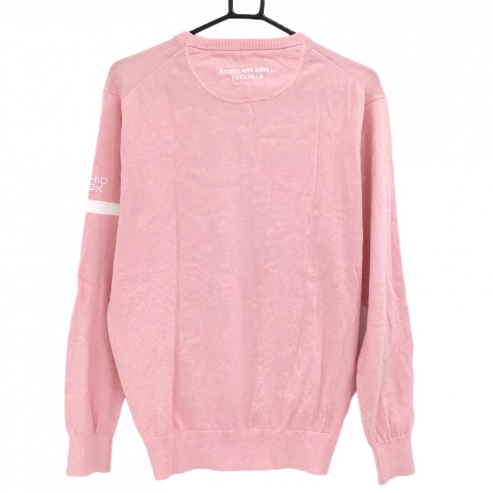 ラフアンドスウェル セーター ピンク×白 袖ラインコットン100% ニット メンズ M ゴルフウェア rough&swell