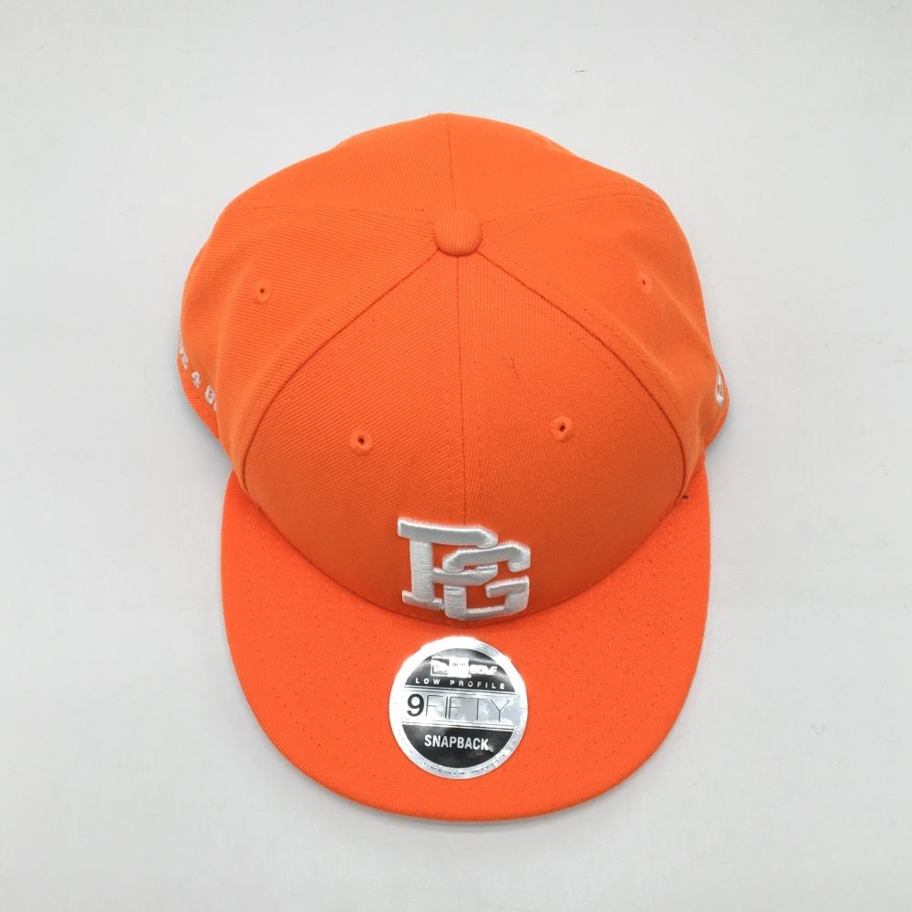 【超美品】パーリーゲイツ×ニューエラ フラットキャップ オレンジ×白 ロゴ刺しゅう FR ゴルフウェア PEARLY GATES