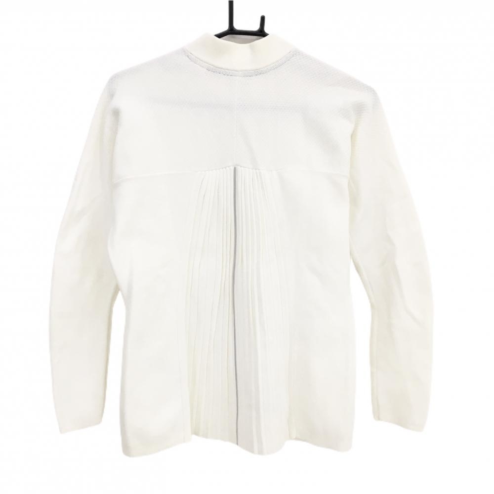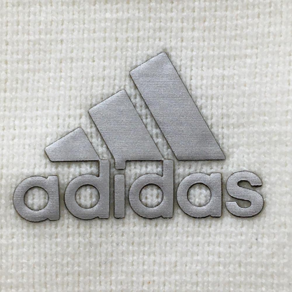 【美品】アディダス ニットジャケット 白 胸元ロゴ ナイロン100% レディース L ゴルフウェア adidas