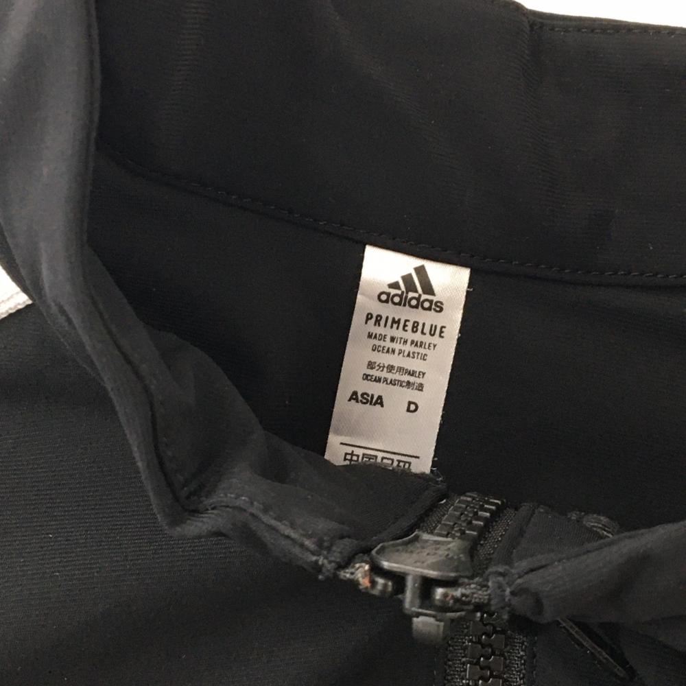 【美品】アディダス ジャケット 黒×白 肩・袖3ライン 胸元ロゴ レディース 1(M) ゴルフウェア adidas
