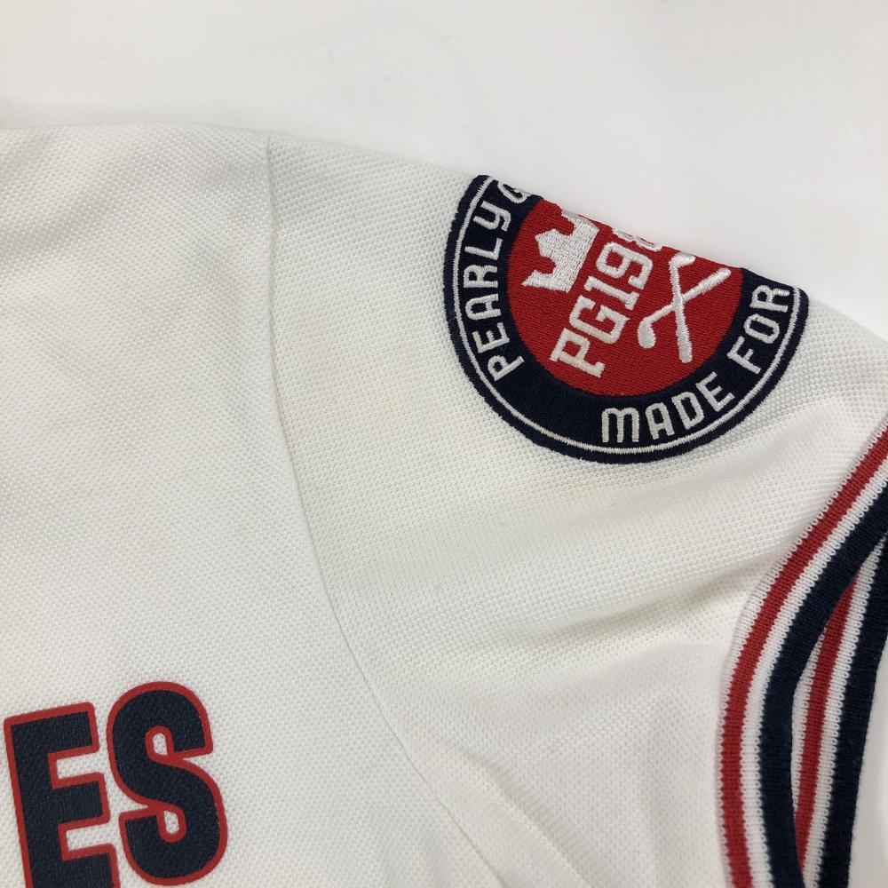 パーリーゲイツ 半袖ポロシャツ 白×ダークネイビー×レッド フロントロゴプリント レディース 0(S) ゴルフウェア PEARLY GATES