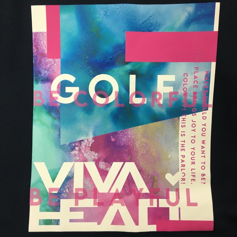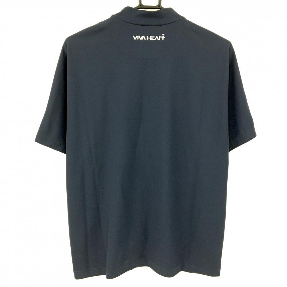 【超美品】ビバハート 半袖ハイネックシャツ ネイビー フロントビッグプリント メンズ 48(M) ゴルフウェア VIVA HEART