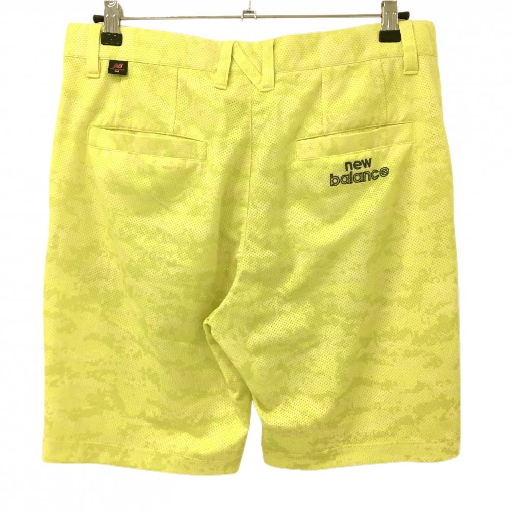 【超美品】ニューバランスゴルフ ハーフパンツ イエロー系 メッシュ調 総柄 メンズ 5(L) ゴルフウェア New Balance