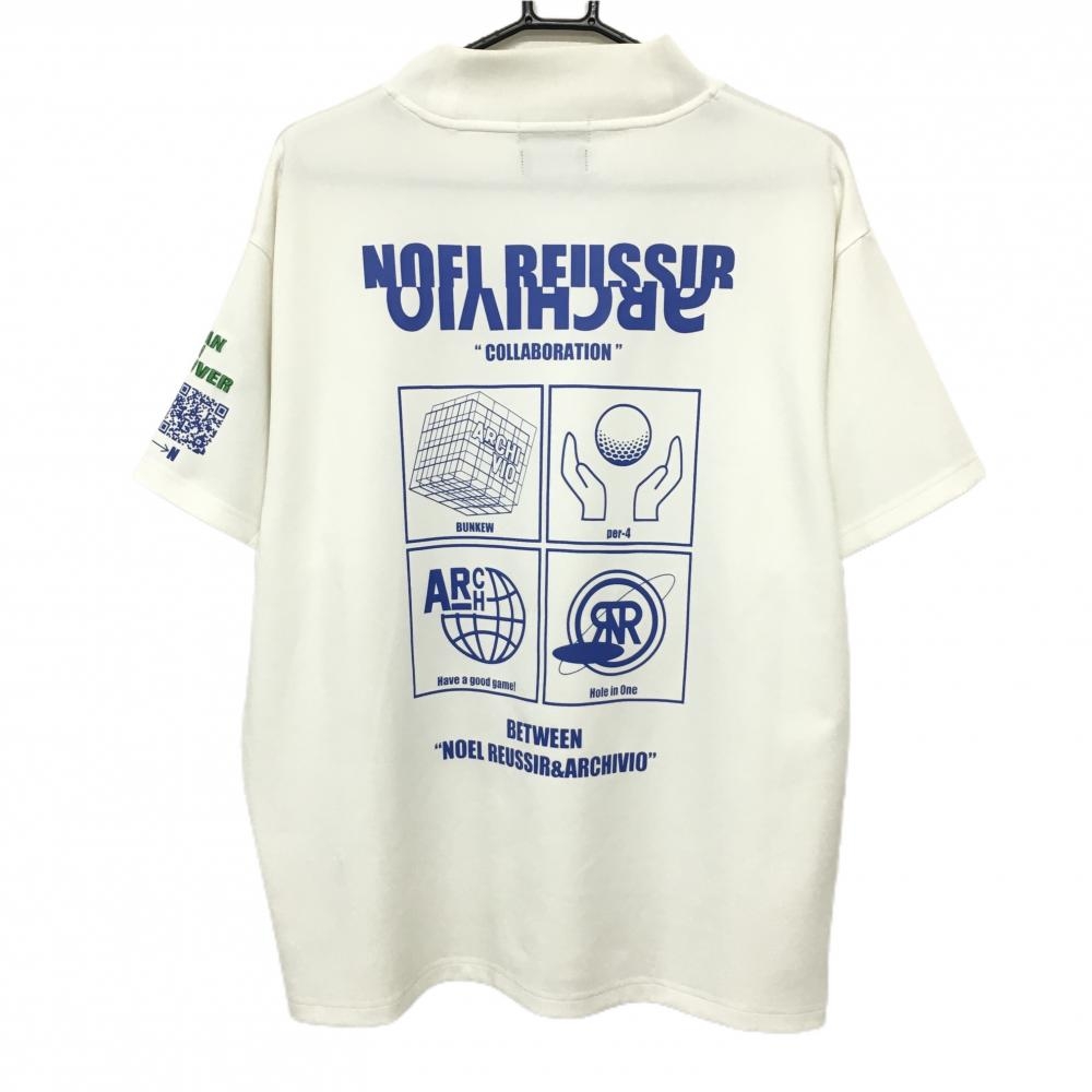 ノエルレウシール×アルチビオ 半袖ハイネックシャツ 白×ブルー 背面プリント メンズ 2 ゴルフウェア archivio