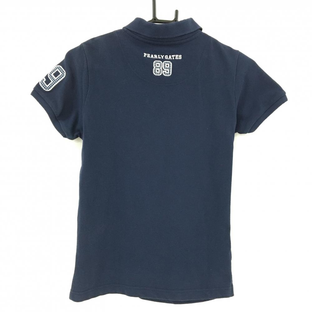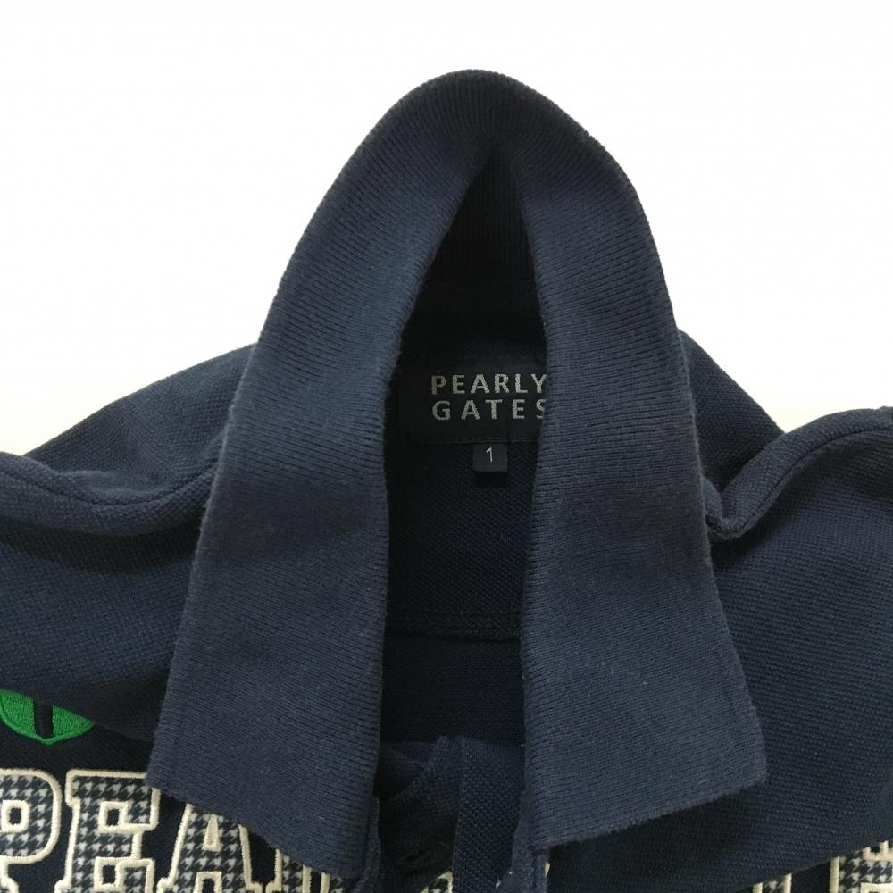 パーリーゲイツ 半袖ポロシャツ ネイビー×白 フロントロゴ千鳥格子 レディース 1(M) ゴルフウェア PEARLY GATES