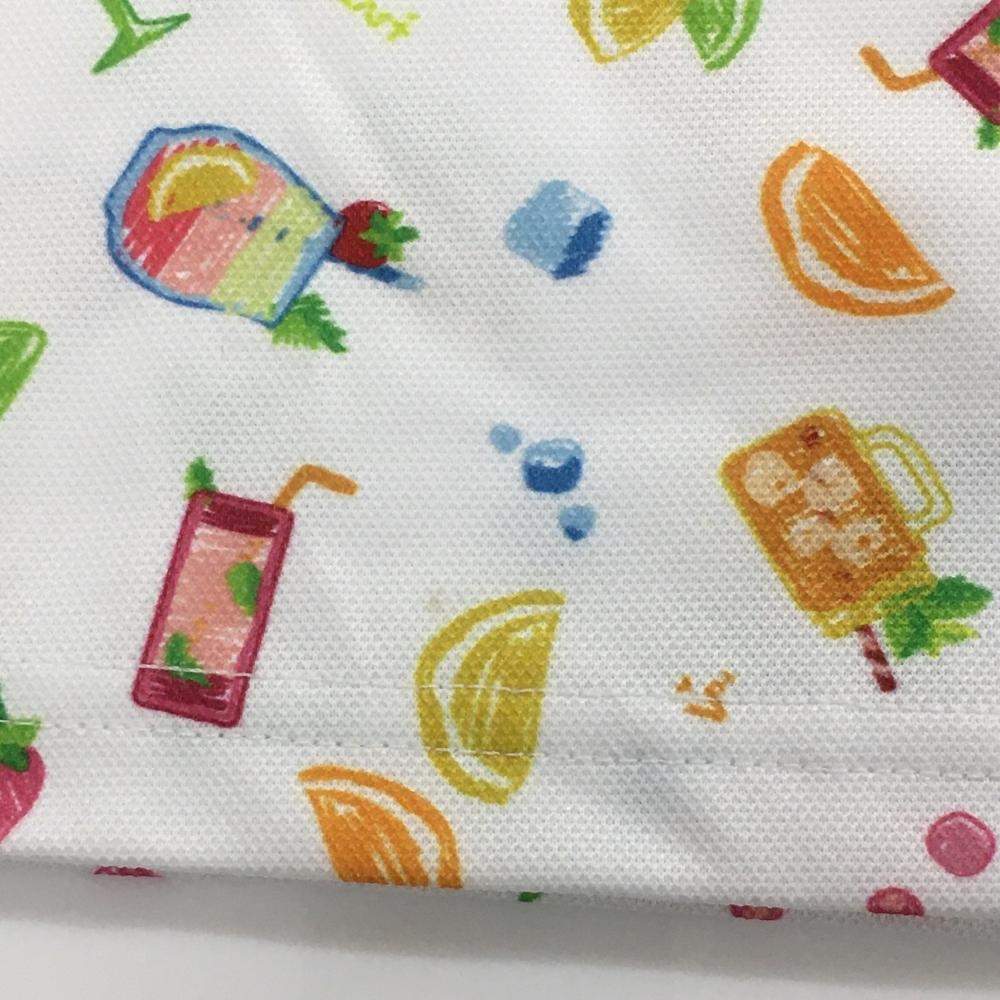 【超美品】ビバハート 半袖ポロシャツ 白×マルチカラー フルーツ・カクテルグラス総柄 ロゴ レディース 40(M) ゴルフウェア VIVA HEART