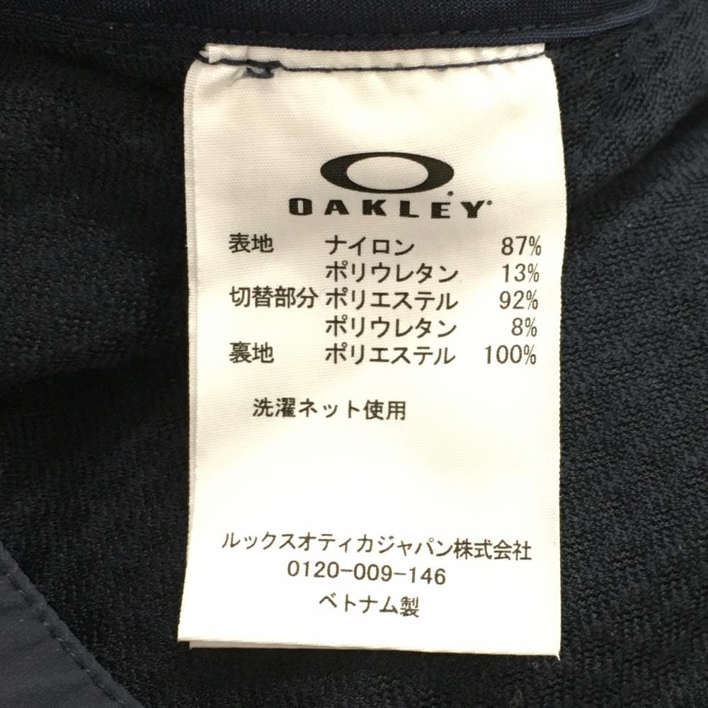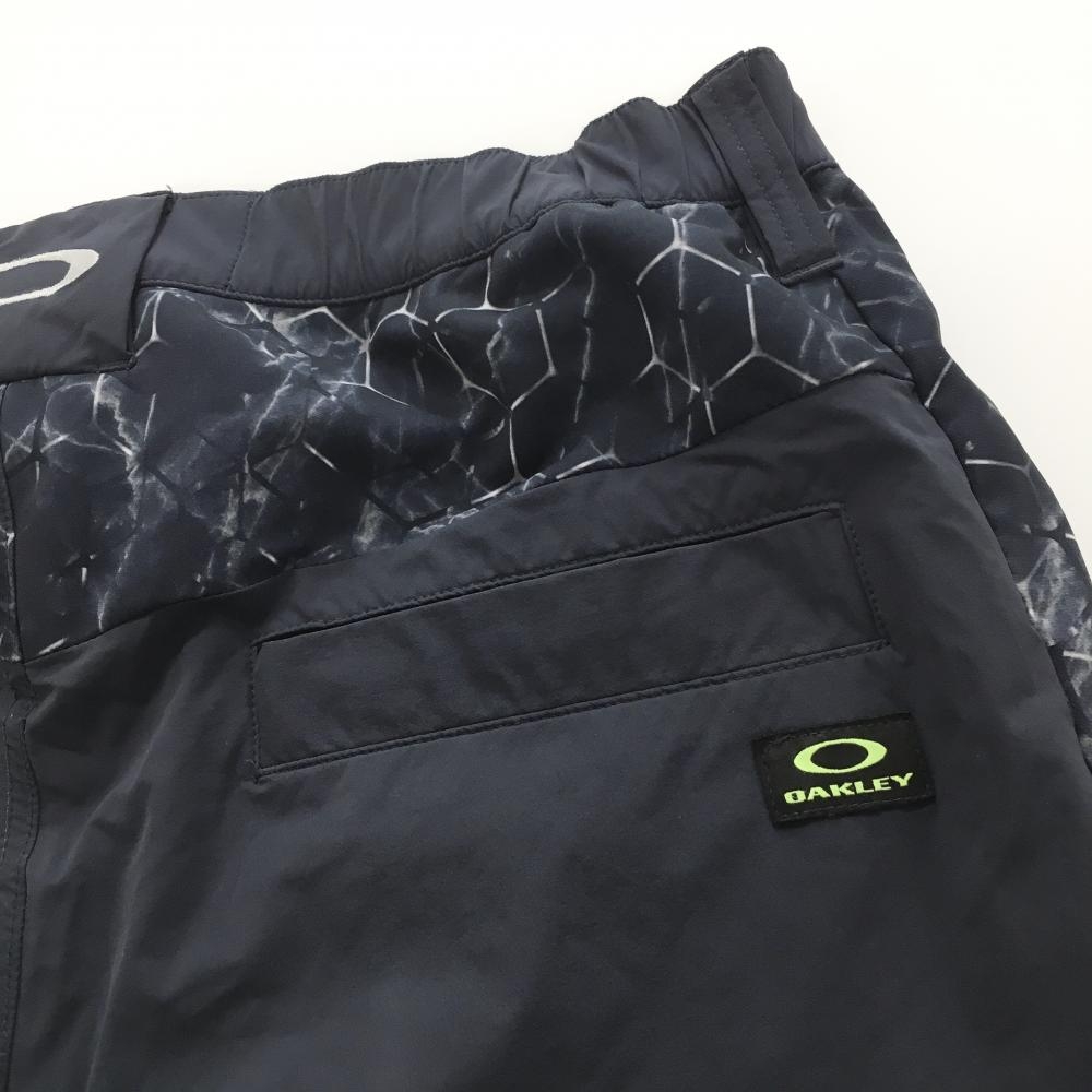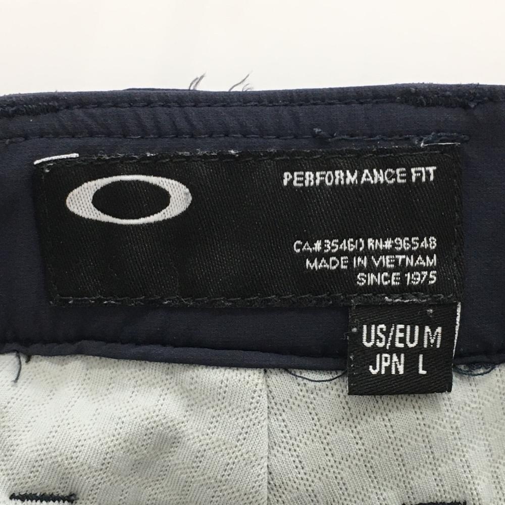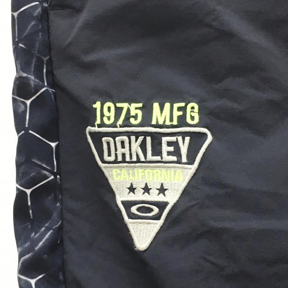 【美品】オークリー ナイロンパンツ ネイビー×白 一部柄 裏地付 後ろウエストゴム メンズ L ゴルフウェア Oakley
