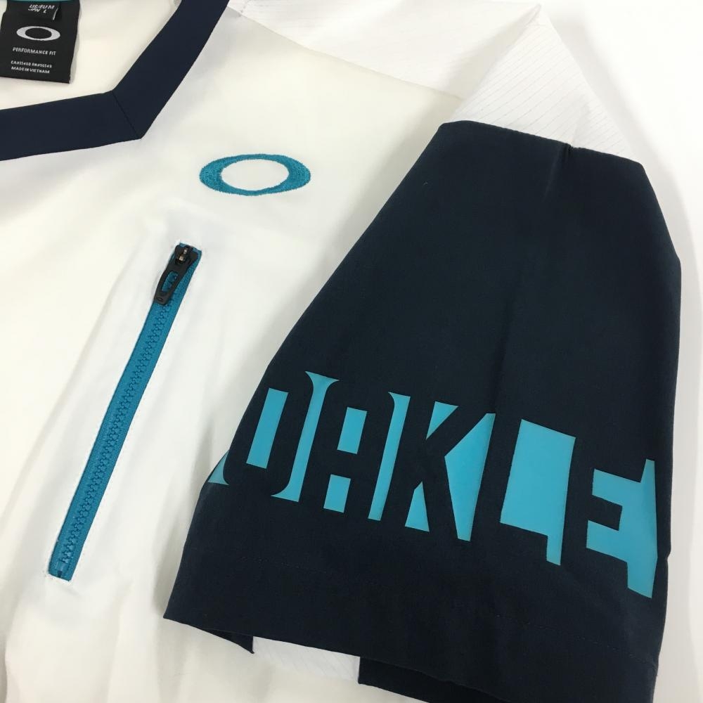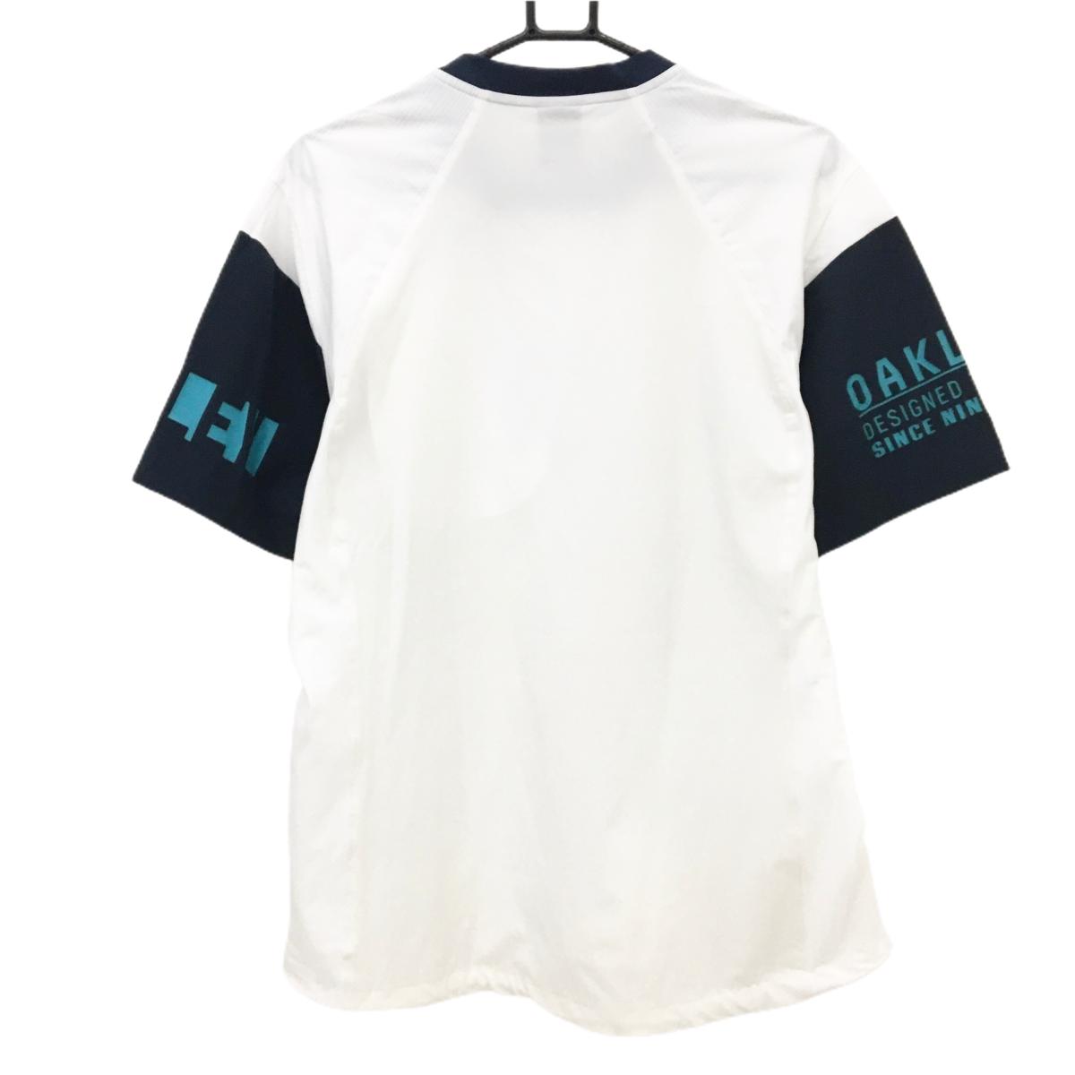 【超美品】オークリー 半袖スニード 白×ネイビー 胸ポケット 裾ドローコード メンズ L ゴルフウェア Oakley