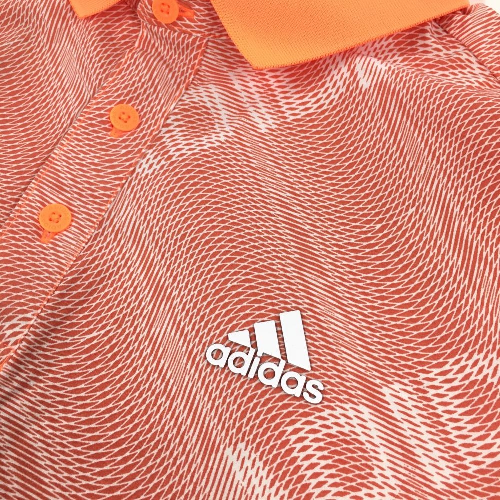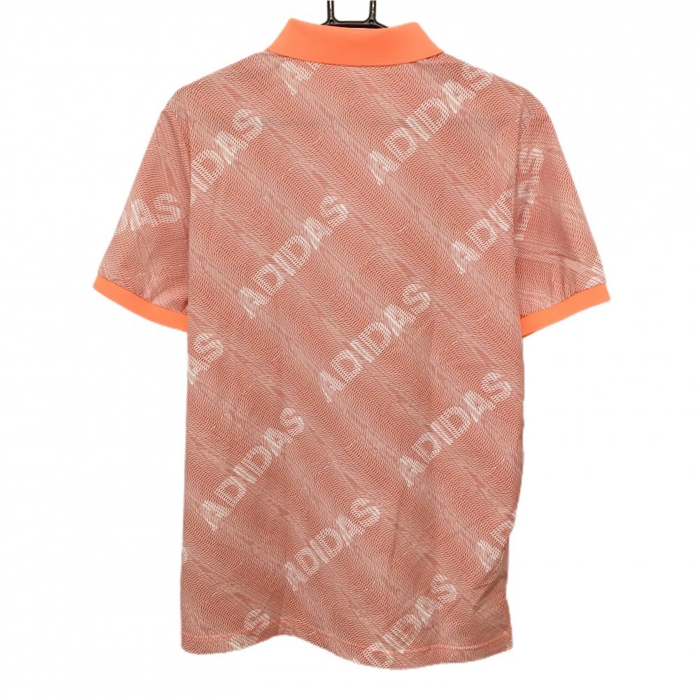 【超美品】アディダス 半袖ポロシャツ オレンジ×白 総柄 ナイロン混 メンズ L ゴルフウェア adidas
