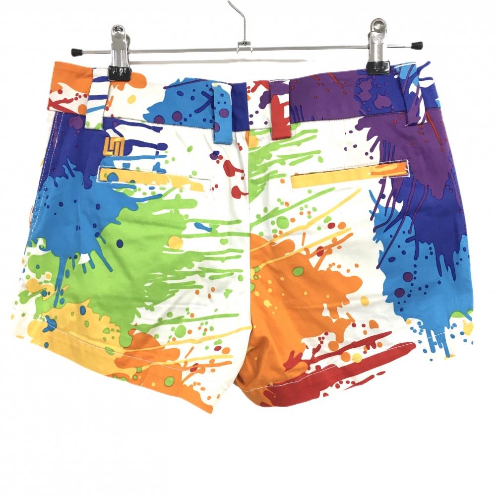 【美品】ラウドマウス ショートパンツ 白×マルチカラー スプラッシュ柄 ドロップクロス レディース US-4 ゴルフウェア LOUDMOUTH