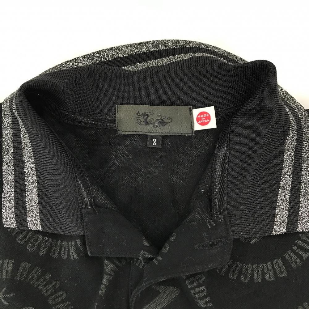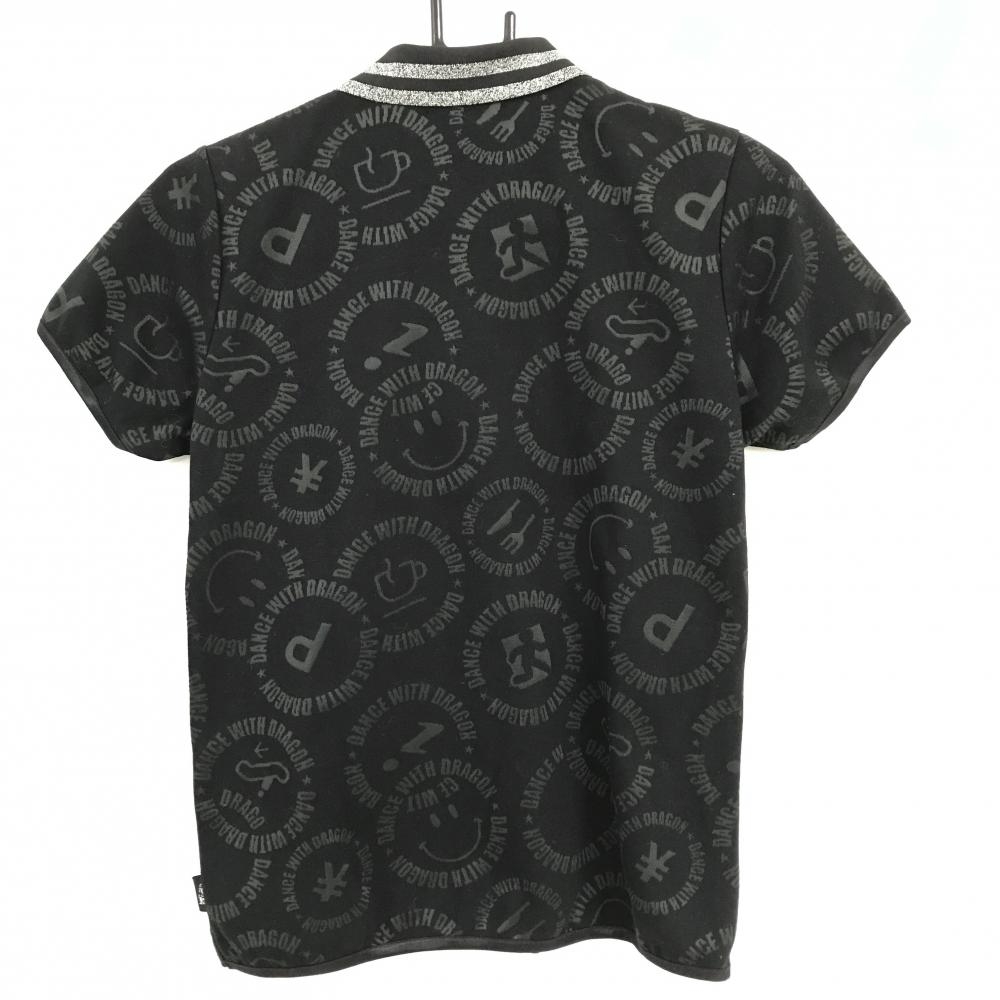 【美品】ダンスウィズドラゴン 半袖ポロシャツ 黒×グレー 総柄 レディース 2(M) ゴルフウェア Dance With Dragon