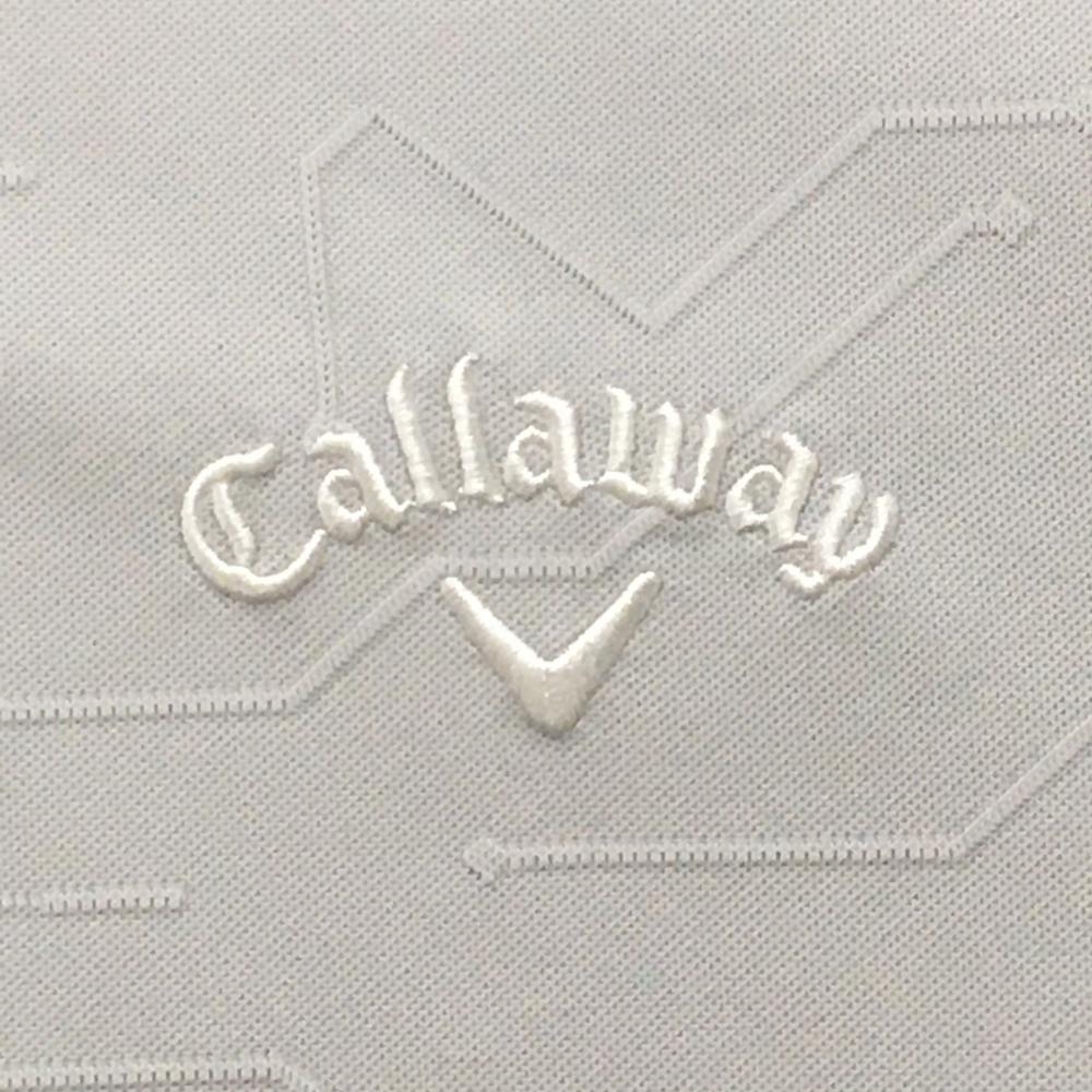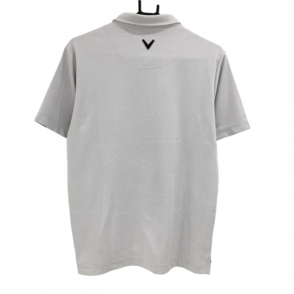 【超美品】キャロウェイ 半袖ポロシャツ ライトグレー 地模様 ロゴ刺しゅう メンズ L ゴルフウェア Callaway