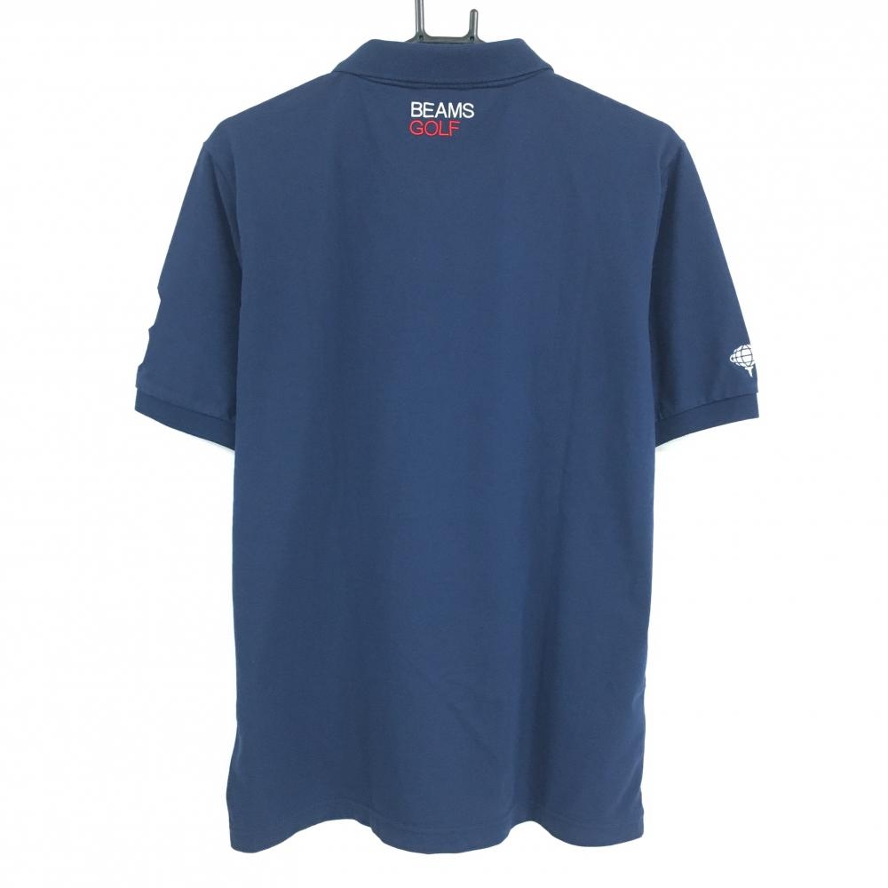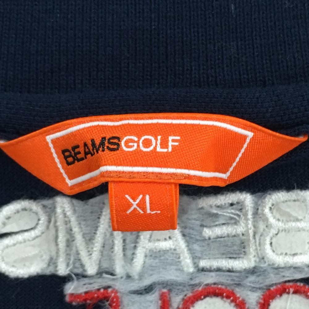 【超美品】ビームスゴルフ 半袖ポロシャツ ネイビー×白 袖ロゴ刺しゅう メンズ XL ゴルフウェア BEAMS GOLF