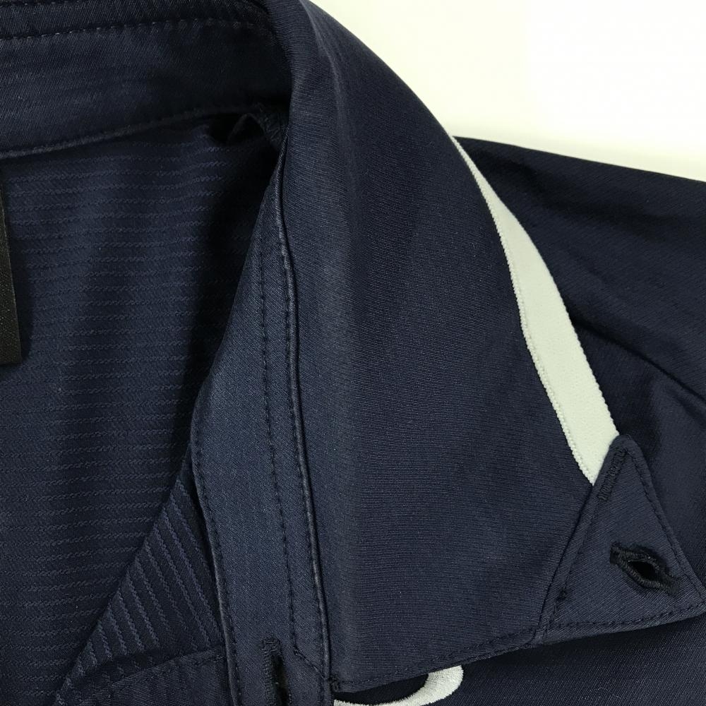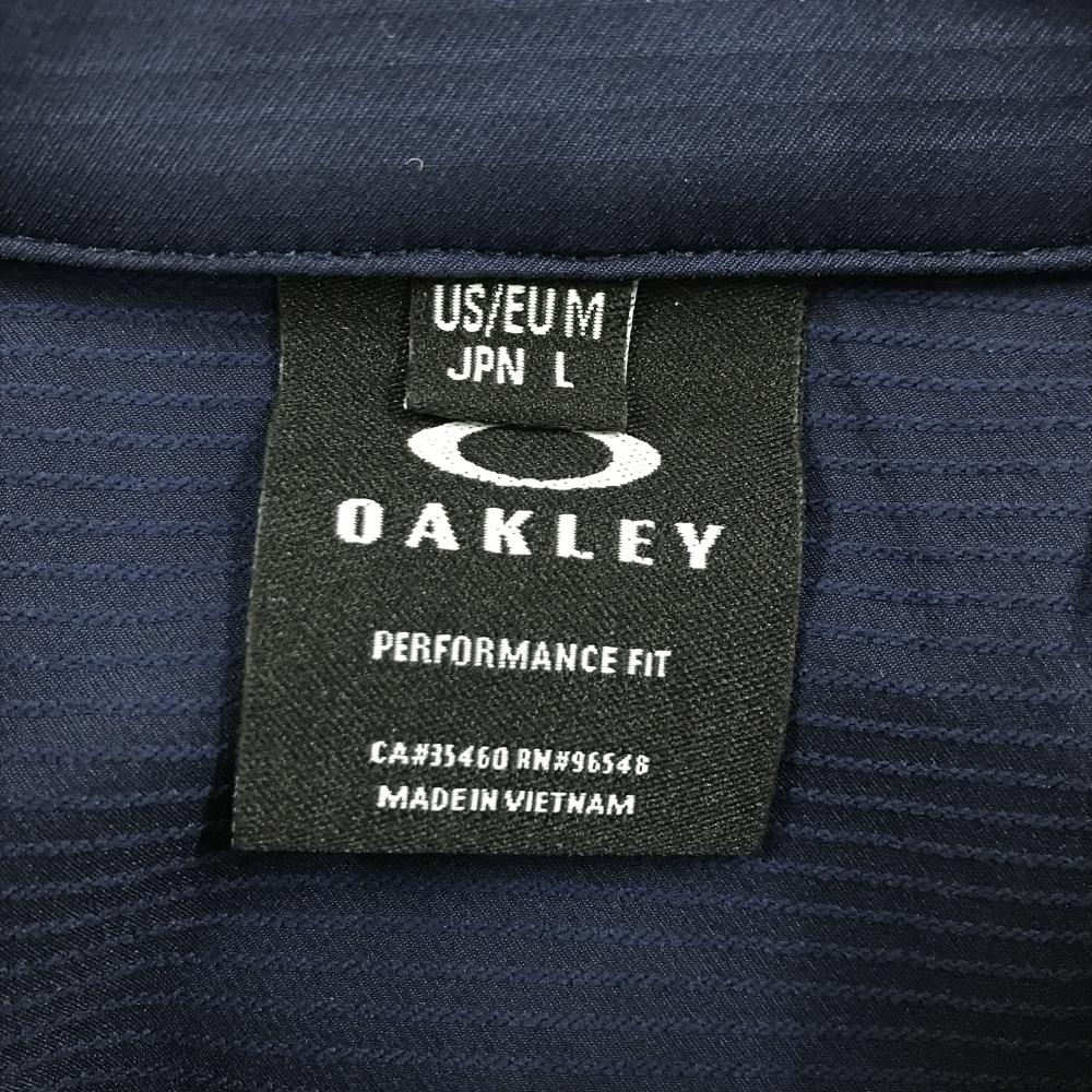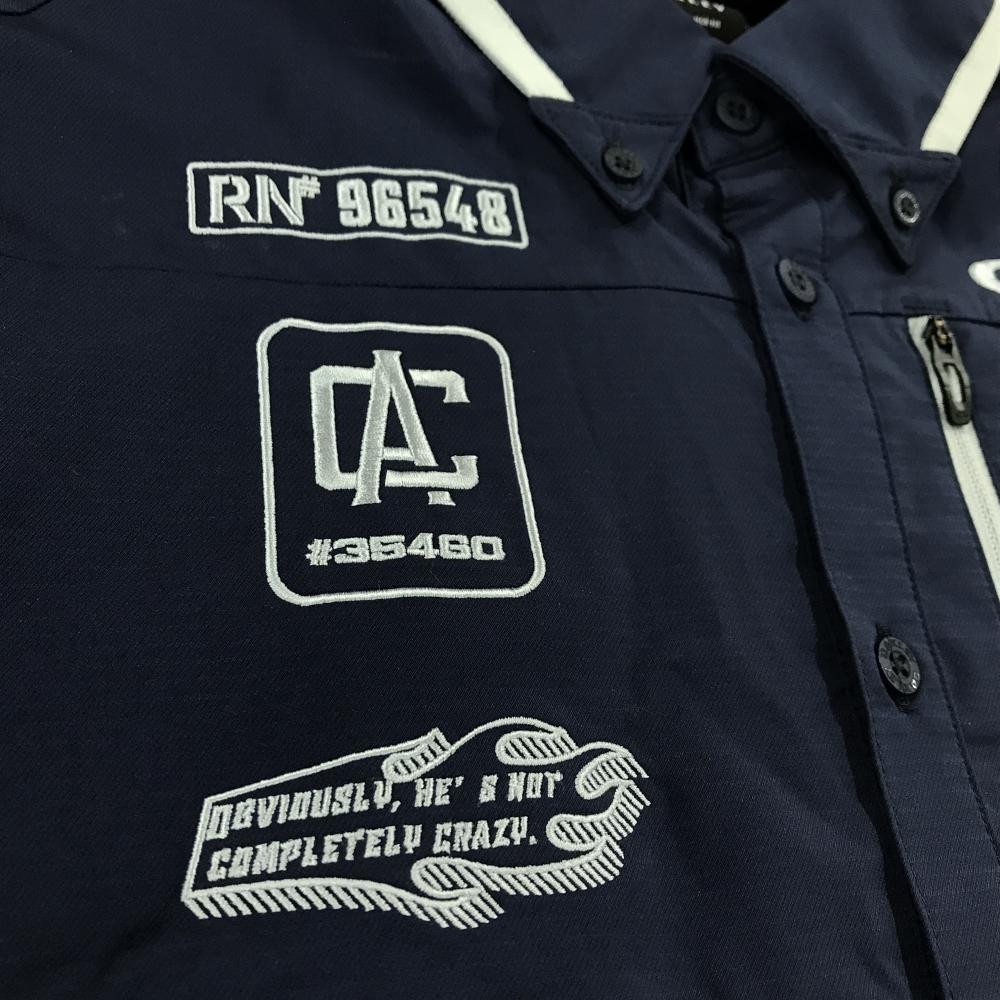 オークリー 半袖シャツ ネイビー×ライトグレー ロゴ刺しゅう ボタンダウン メンズ L ゴルフウェア Oakley