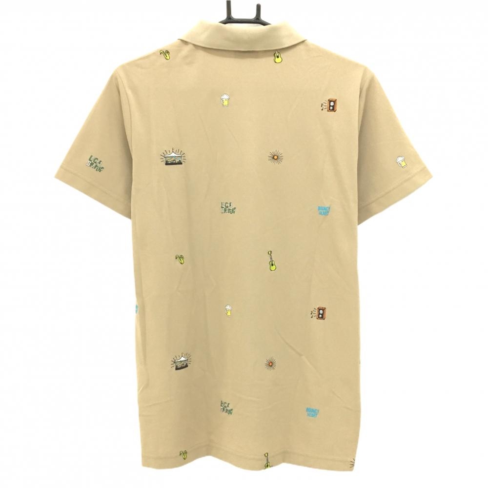 【超美品】ルコックゴルフ 半袖ポロシャツ ベージュ 刺しゅう総柄 ギター メンズ L ゴルフウェア le coq sportif