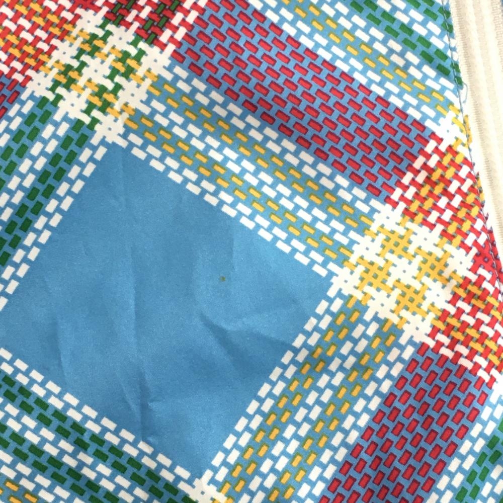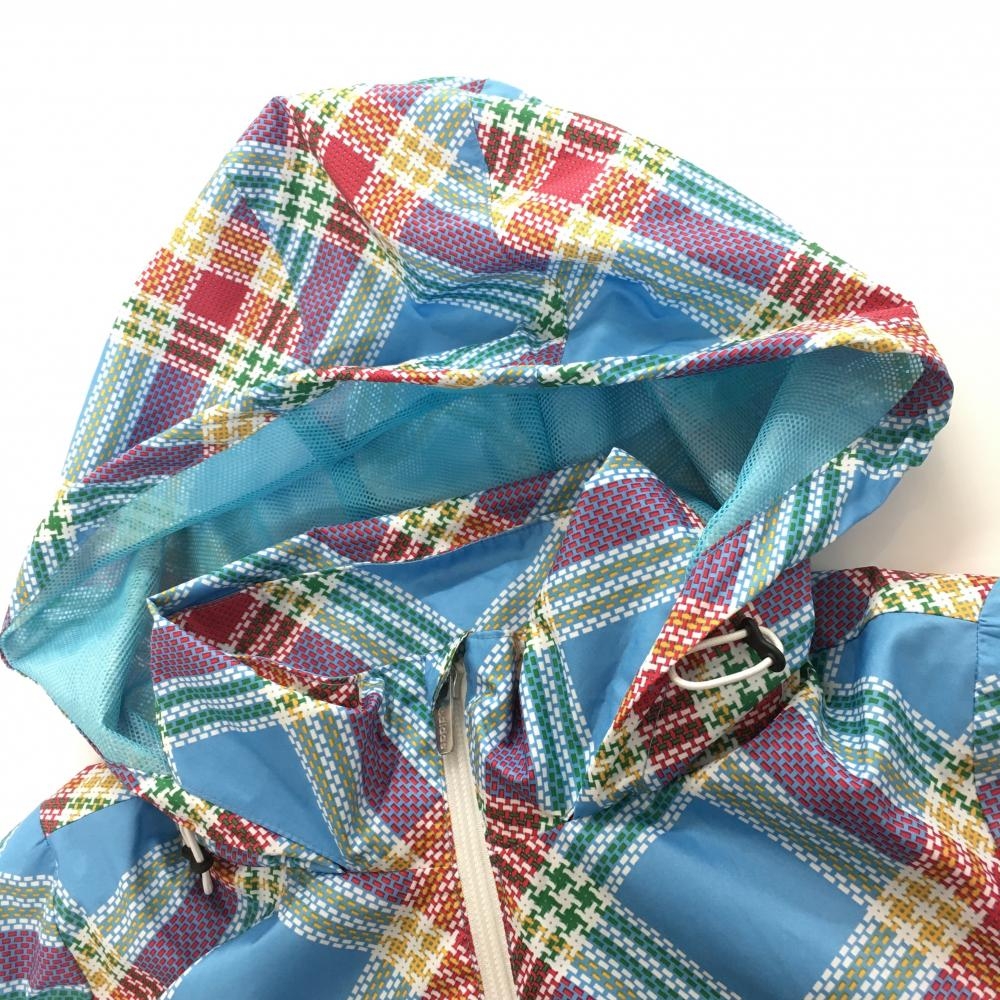 【美品】アディダス ジップパーカー ライトブルー×レッド チェック フード収納可 メッシュ裏地 レディース S/P ゴルフウェア adidas