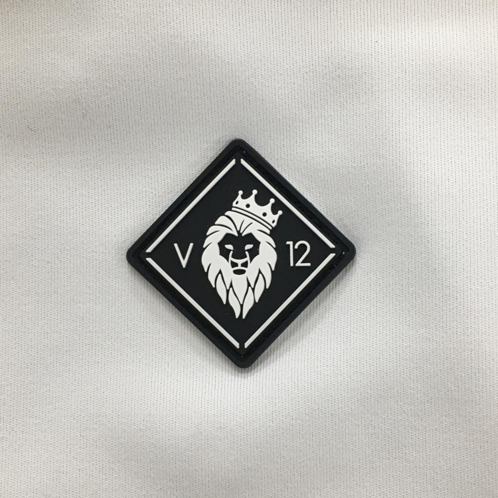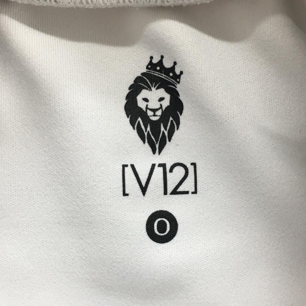 【美品】V12 半袖ハイネックシャツ 白系×黒 ネック英字ロゴ 胸立体ロゴ レディース 0(S) ゴルフウェア V12