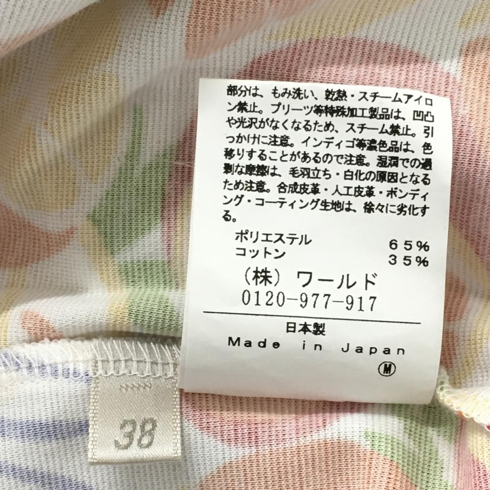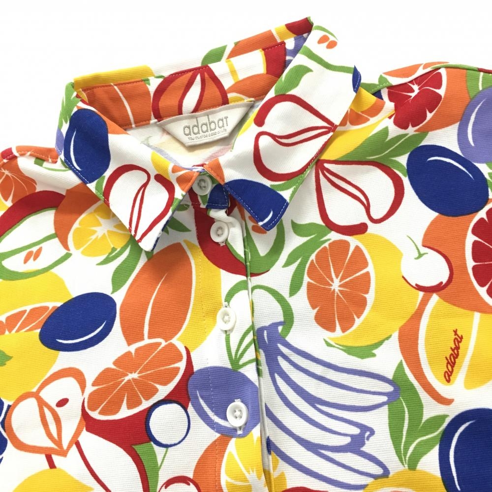 【超美品】アダバット 半袖ポロシャツ 白×マルチカラー フルーツ総柄 レディース 38(M) ゴルフウェア adabat