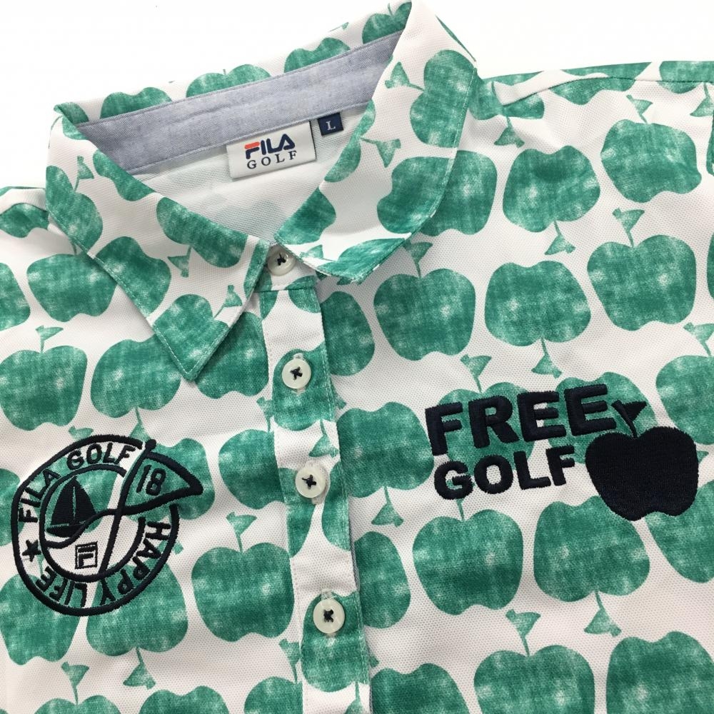【超美品】フィラゴルフ 半袖ポロシャツ 白×グリーン リンゴ総柄 レディース L ゴルフウェア FILA GOLF