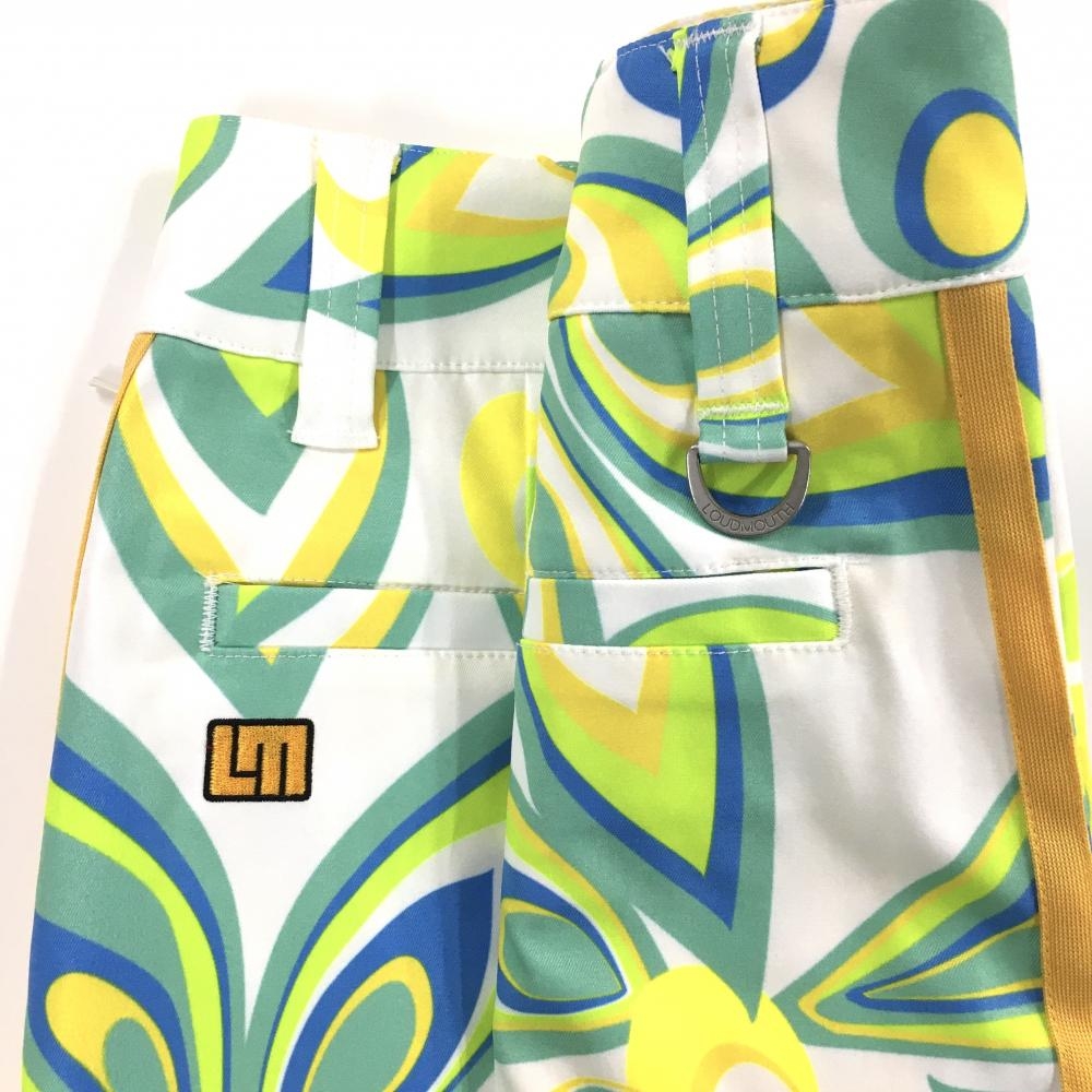 【超美品】ラウドマウス スカート 白×グリーン 総柄 シャガデリックライム 内側インナーパンツ レディース M ゴルフウェア LOUDMOUTH