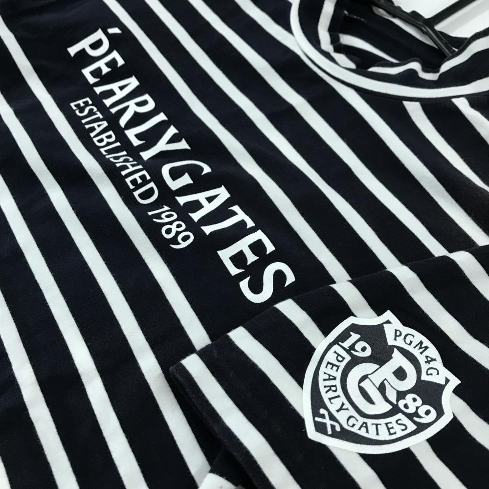 パーリーゲイツ 半袖ハイネックシャツ ネイビー×白 ボーダー メンズ 4(M) ゴルフウェア PEARLY GATES
