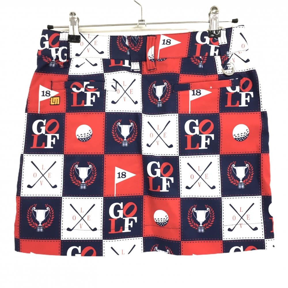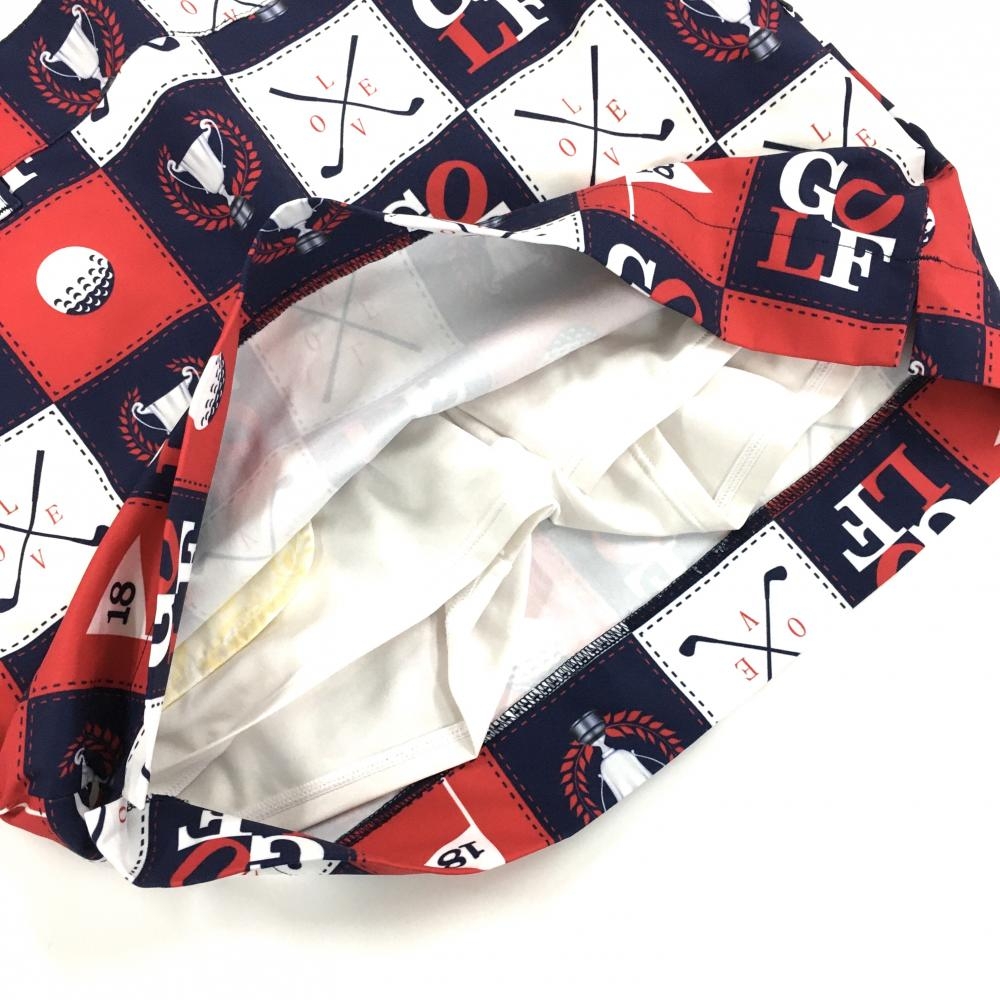 【超美品】ラウドマウス スカート ブルー×レッド 総柄 内側インナーパンツ レディース L ゴルフウェア LOUDMOUTH