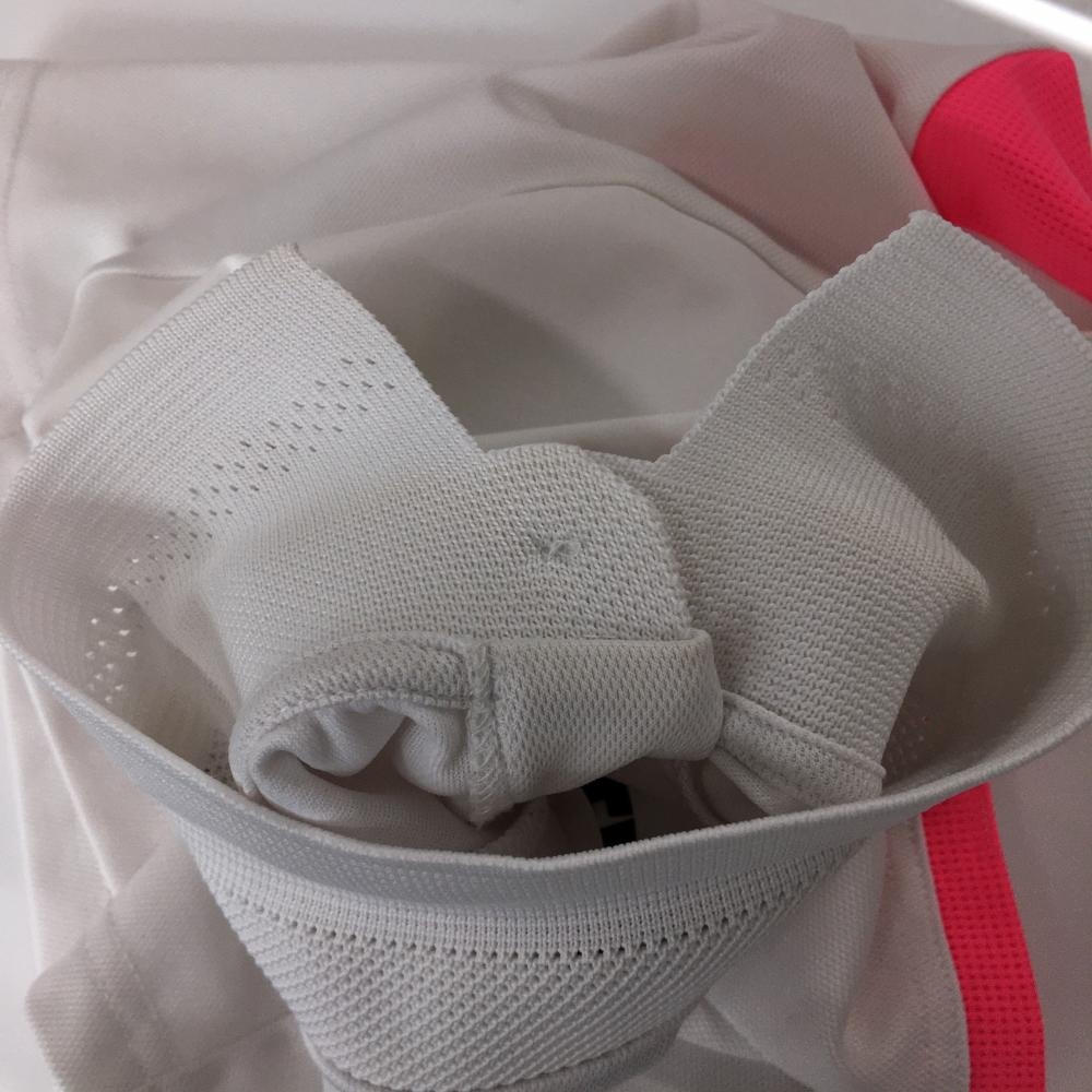 【美品】TFW49 半袖ポロシャツ 白×蛍光ピンク 襟一部メッシュ レディース M ゴルフウェア TFW49