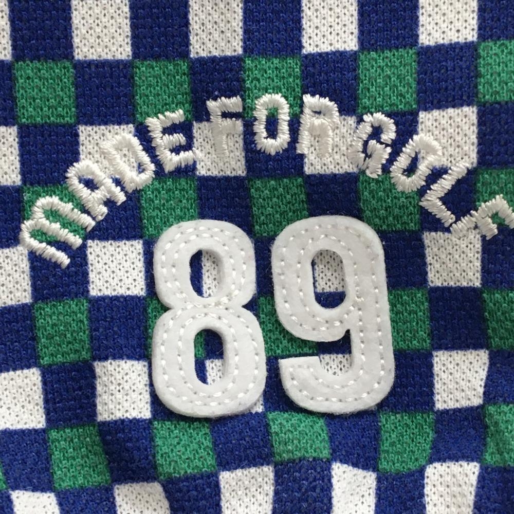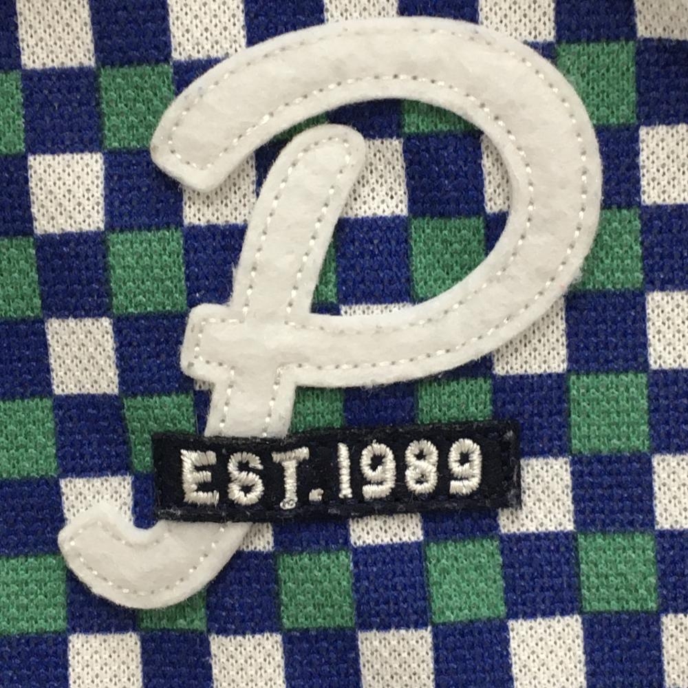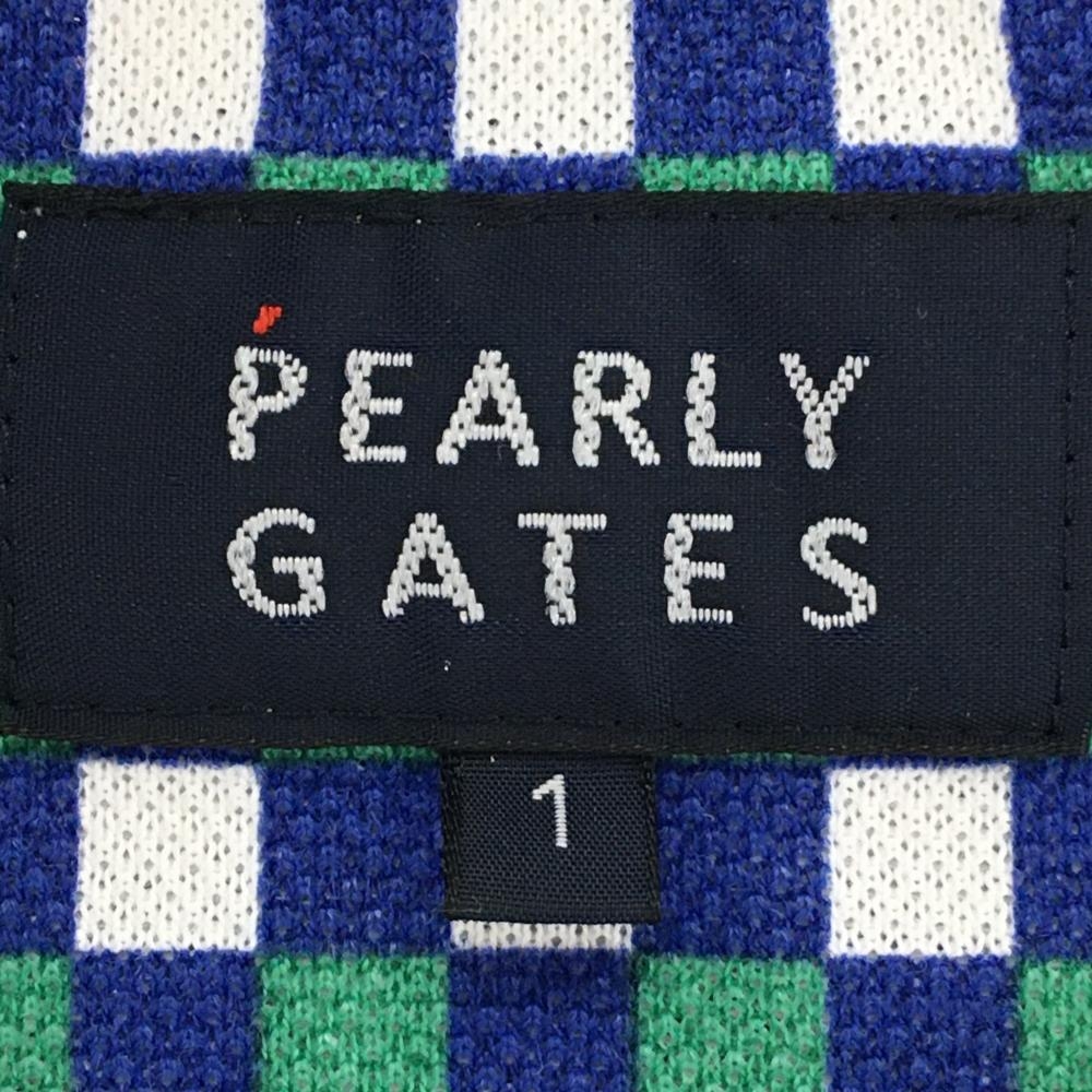 【美品】パーリーゲイツ 半袖ポロシャツ ブルー×グリーン×白 ブロックチェック レディース 1(M) ゴルフウェア PEARLY GATES