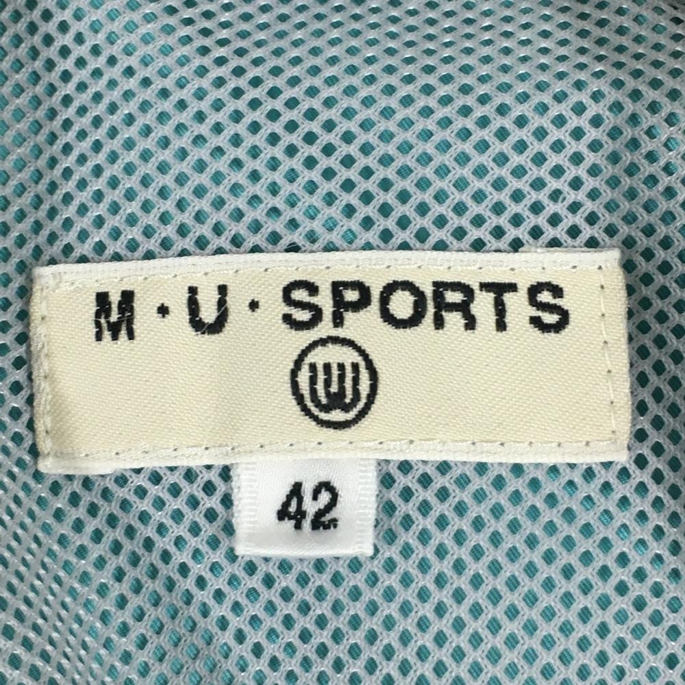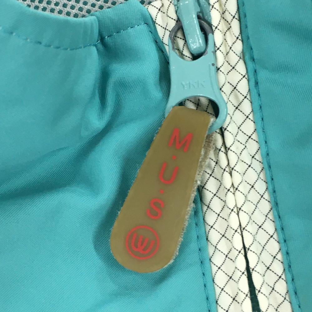 【美品】MUスポーツ アウターベスト ライトブルー系×白 犬 裾ドローコード レディース 42(L) ゴルフウェア M・U SPORTS
