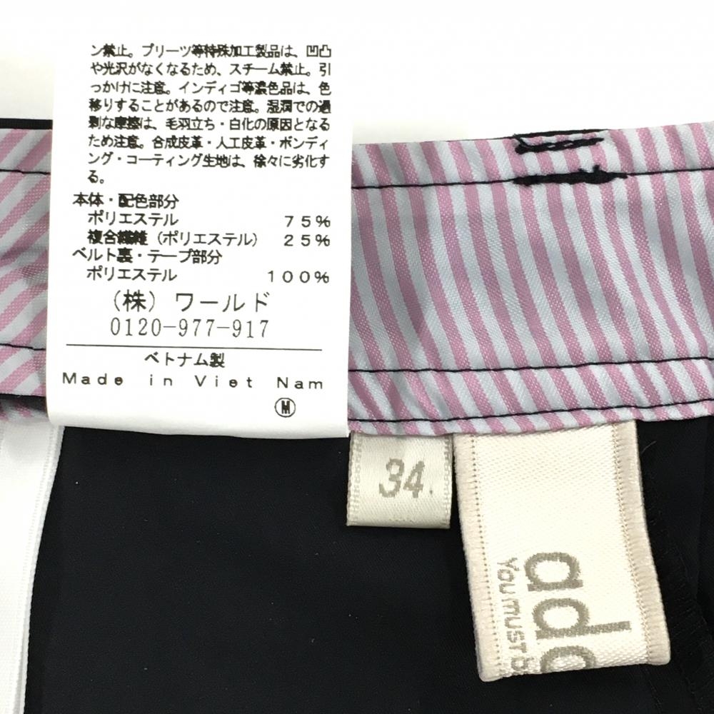 【超美品】アダバット スカート 黒×白×ライトグレー 裾ライン 後ろロゴ刺しゅう ストレッチ レディース 34(XS) ゴルフウェア adabat