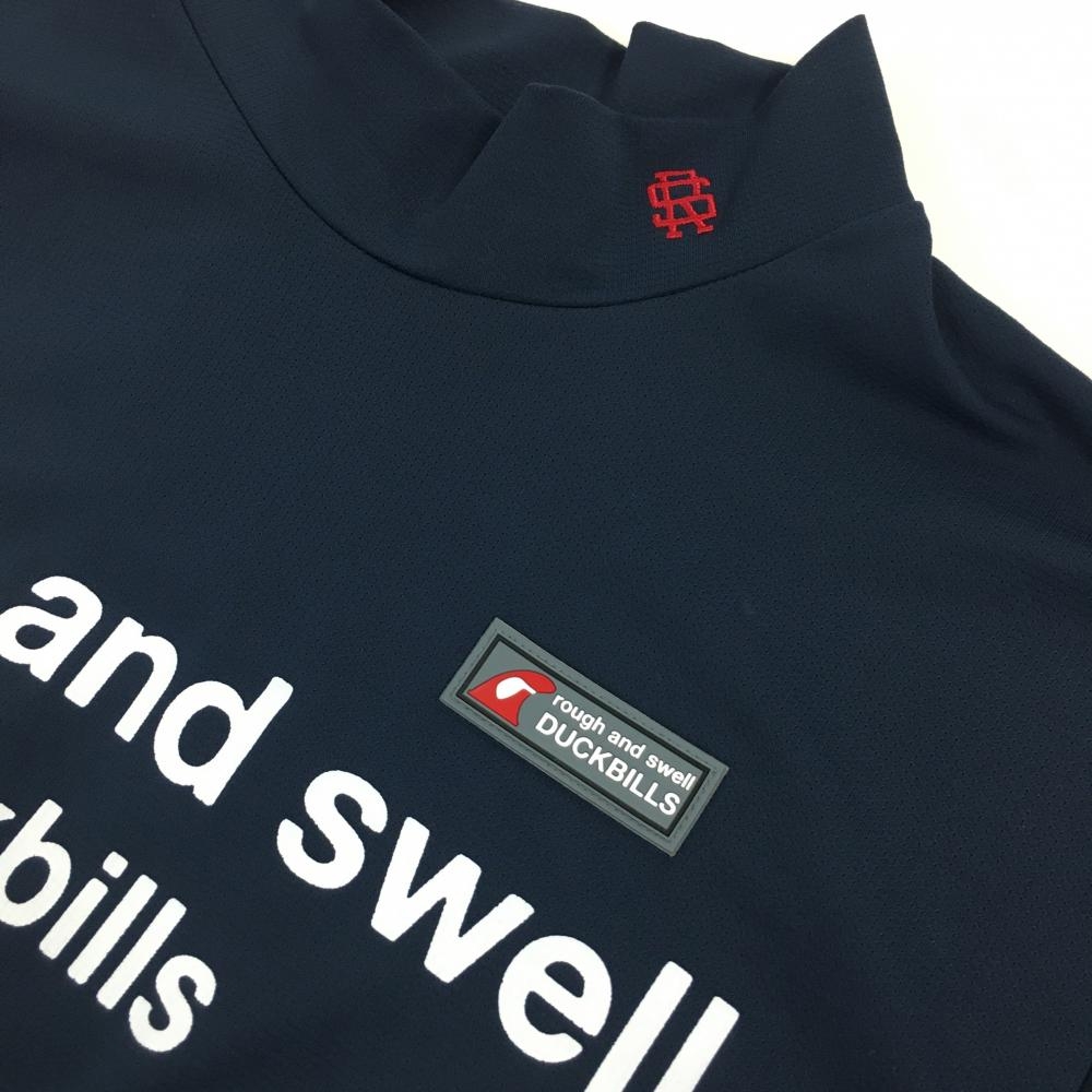 【美品】ラフアンドスウェル 長袖ハイネックシャツ ネイビー フロントロゴ メンズ M ゴルフウェア rough&swell