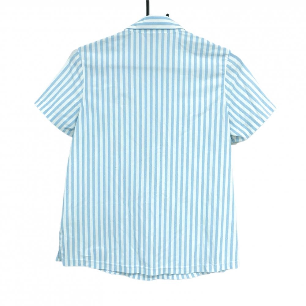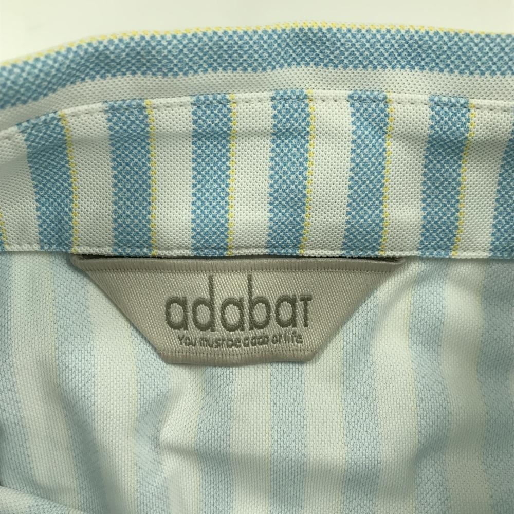 【超美品】アダバット 半袖ポロシャツ ライトブルー×白 ストライプ レディース 40(L) ゴルフウェア adabat