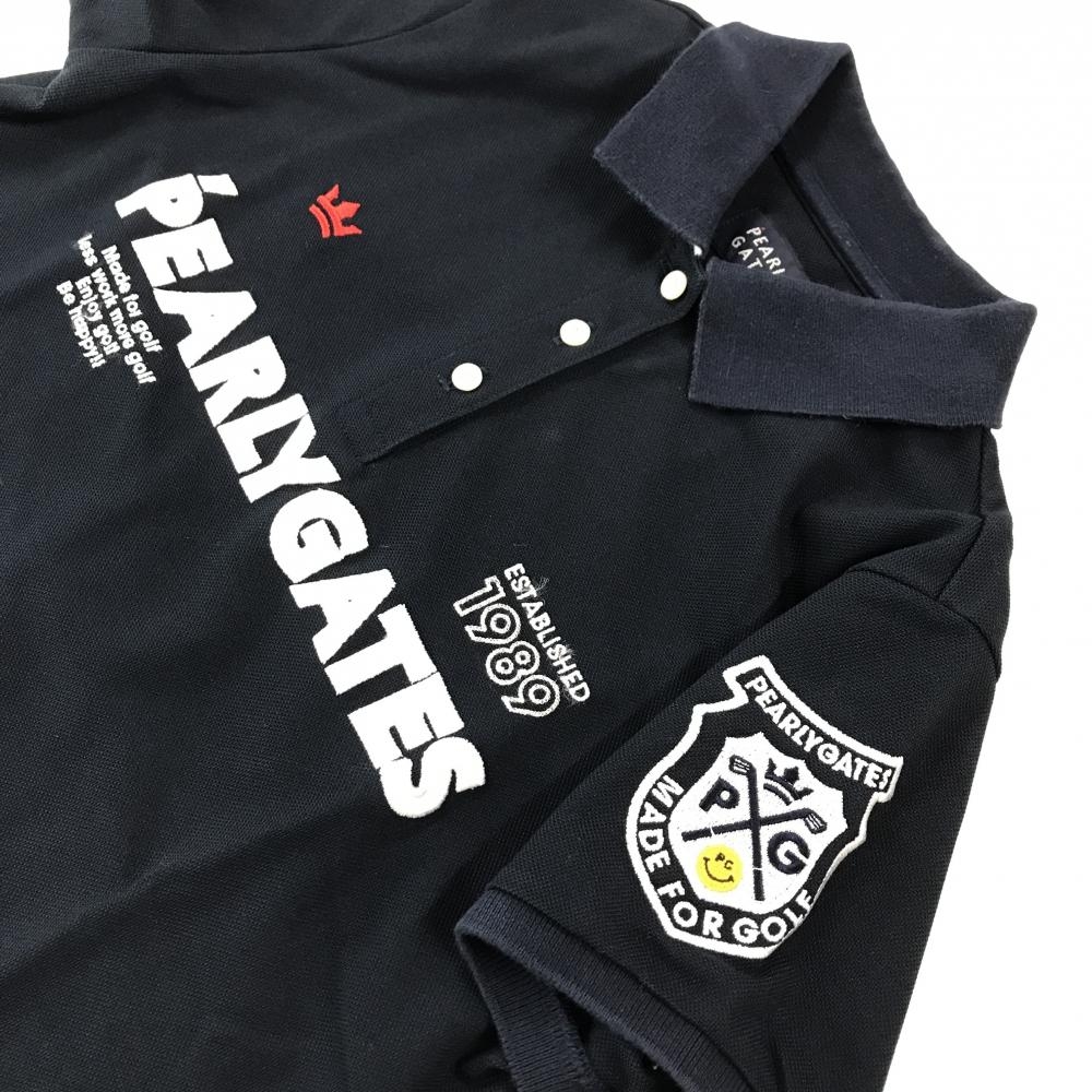 パーリーゲイツ 半袖ポロシャツ ネイビー×白 フロントロゴ レディース 0(S) ゴルフウェア PEARLY GATES