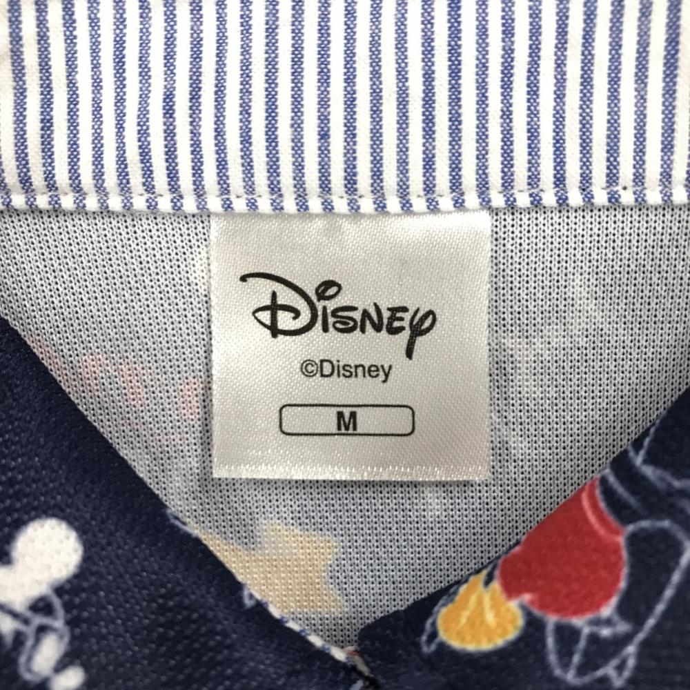 【超美品】ディズニー 半袖ポロシャツ ネイビー×レッド×イエロー 総柄 ミッキー ドナルド レディース M ゴルフウェア Disney