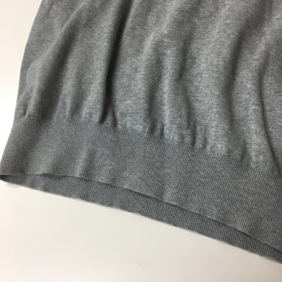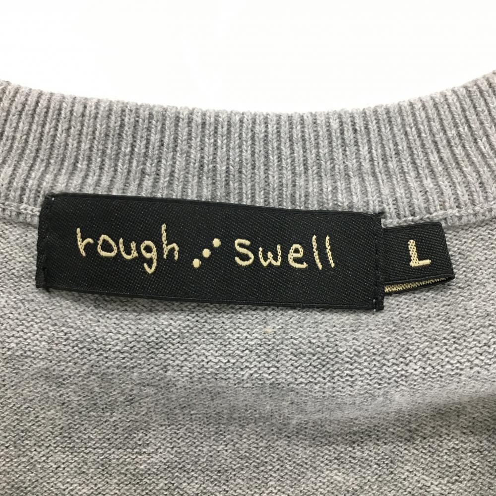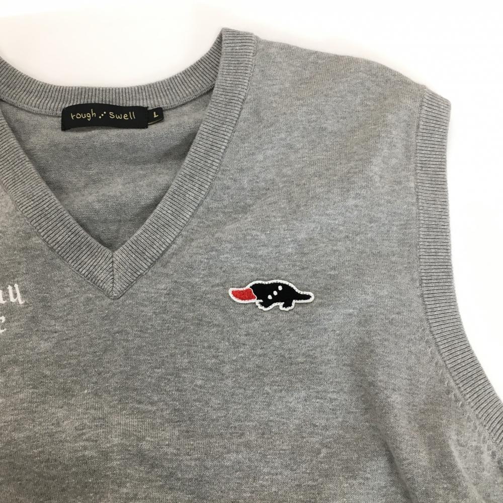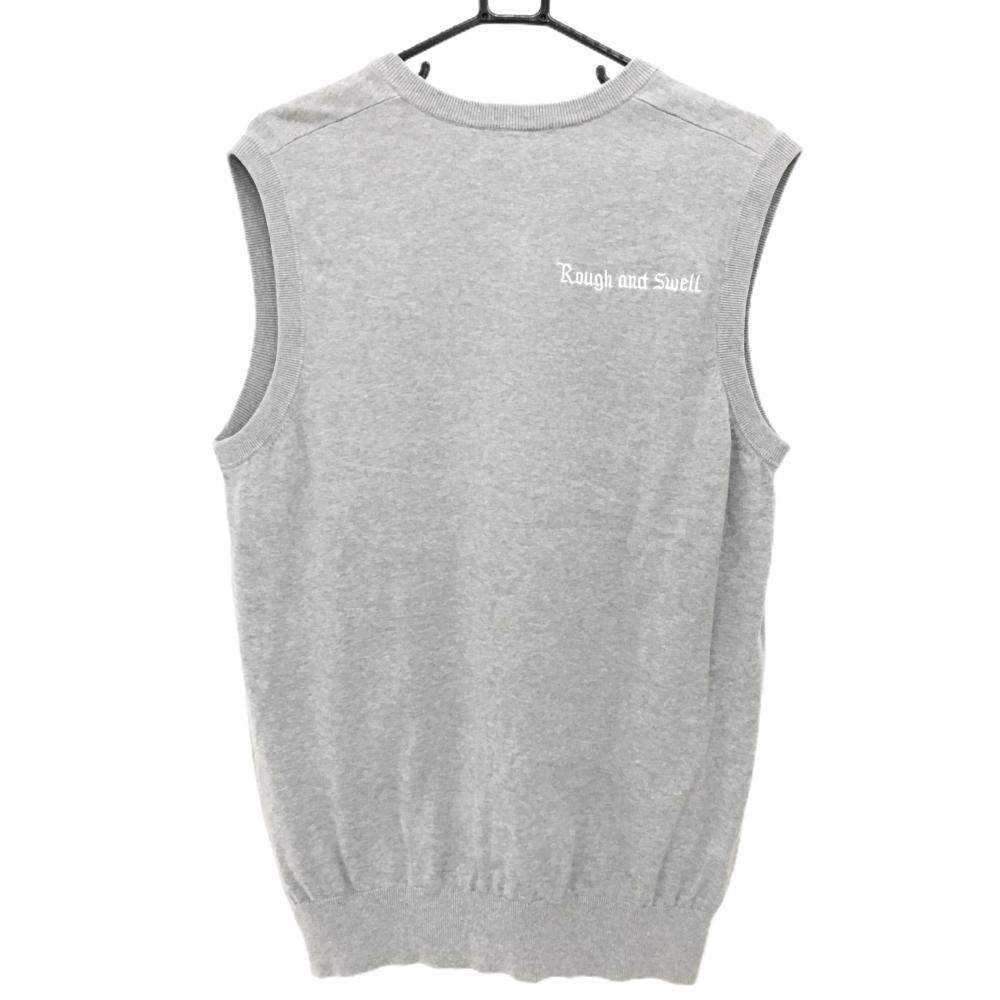 【美品】ラフアンドスウェル ニットベスト 杢グレー 胸ロゴ 綿100% Vネック メンズ L ゴルフウェア rough&swell