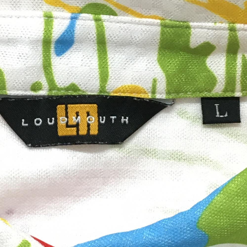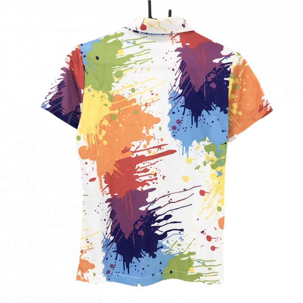 【超美品】ラウドマウス 半袖ポロシャツ 白×マルチカラー ドロップクロス 総柄 レディース L ゴルフウェア LOUDMOUTH