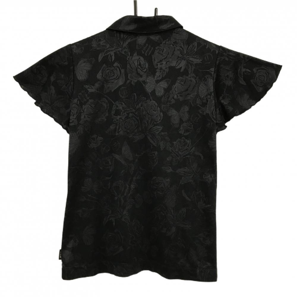 【美品】ダンスウィズドラゴン 半袖ポロシャツ 黒 バラ総柄地模様 レディース 2(M) ゴルフウェア Dance With Dragon
