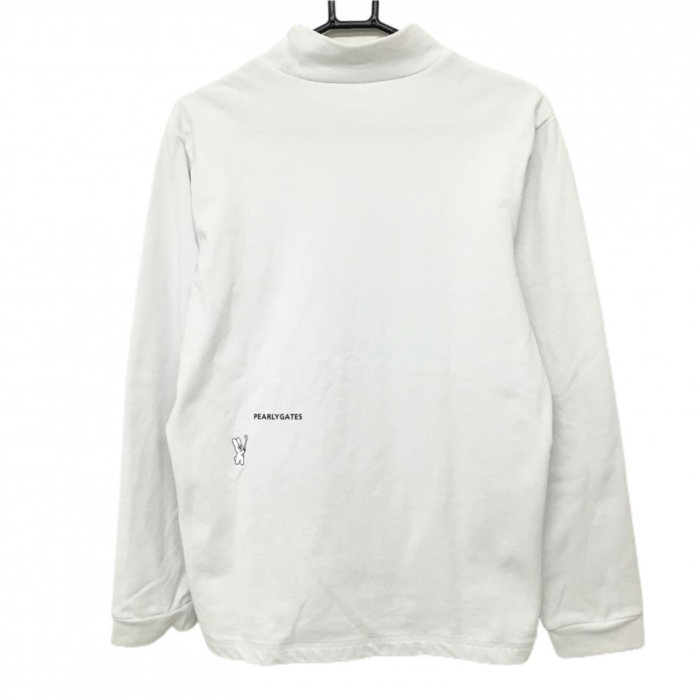 【美品】パーリーゲイツ 長袖ハイネックシャツ 白 もこもこウサギ コットン混裏毛 メンズ 6(XL) ゴルフウェア 2026年モデル PEARLY GATES