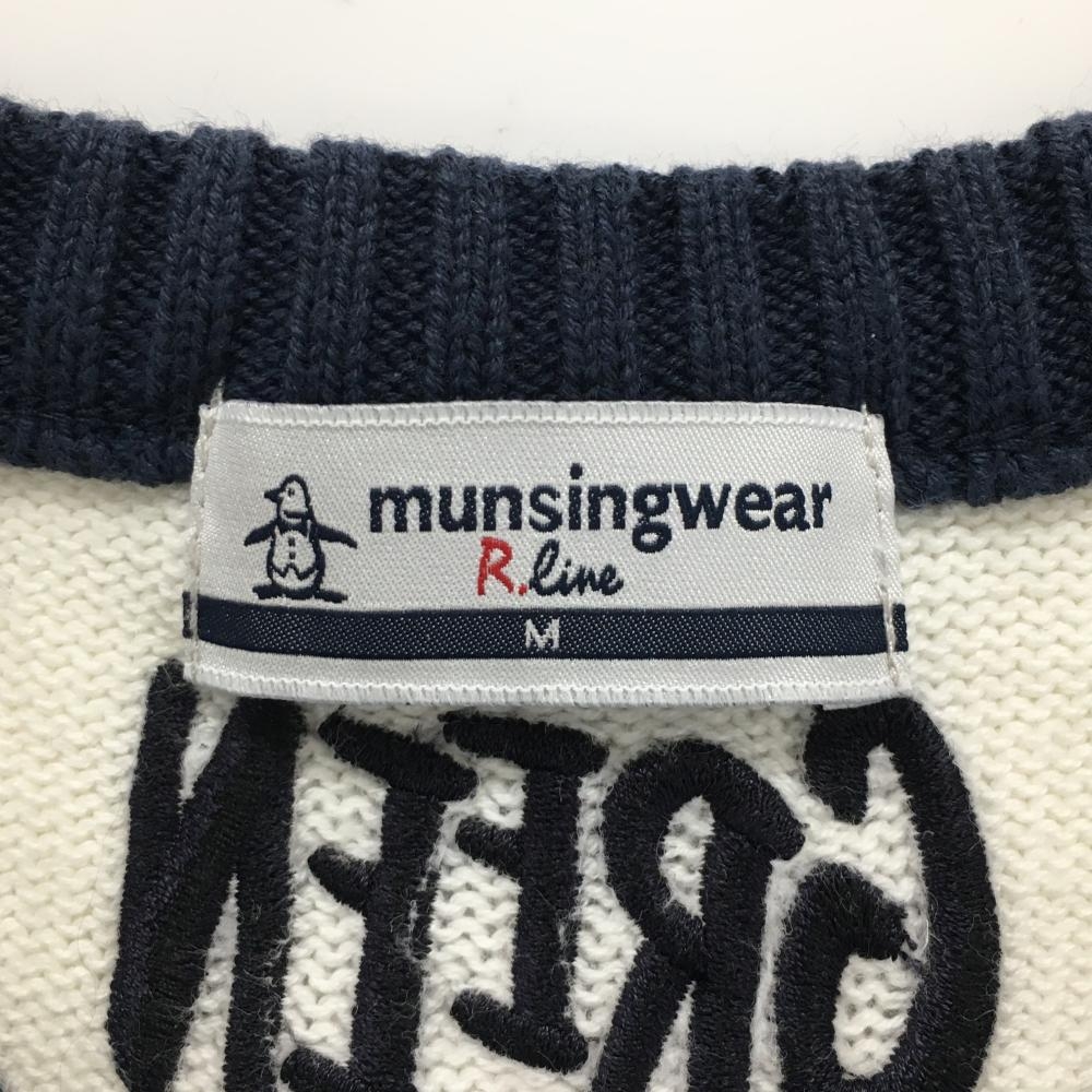 マンシングウェア ニットベスト ネイビー×白 ケーブル編み コットン混 メンズ M ゴルフウェア Munsingwear