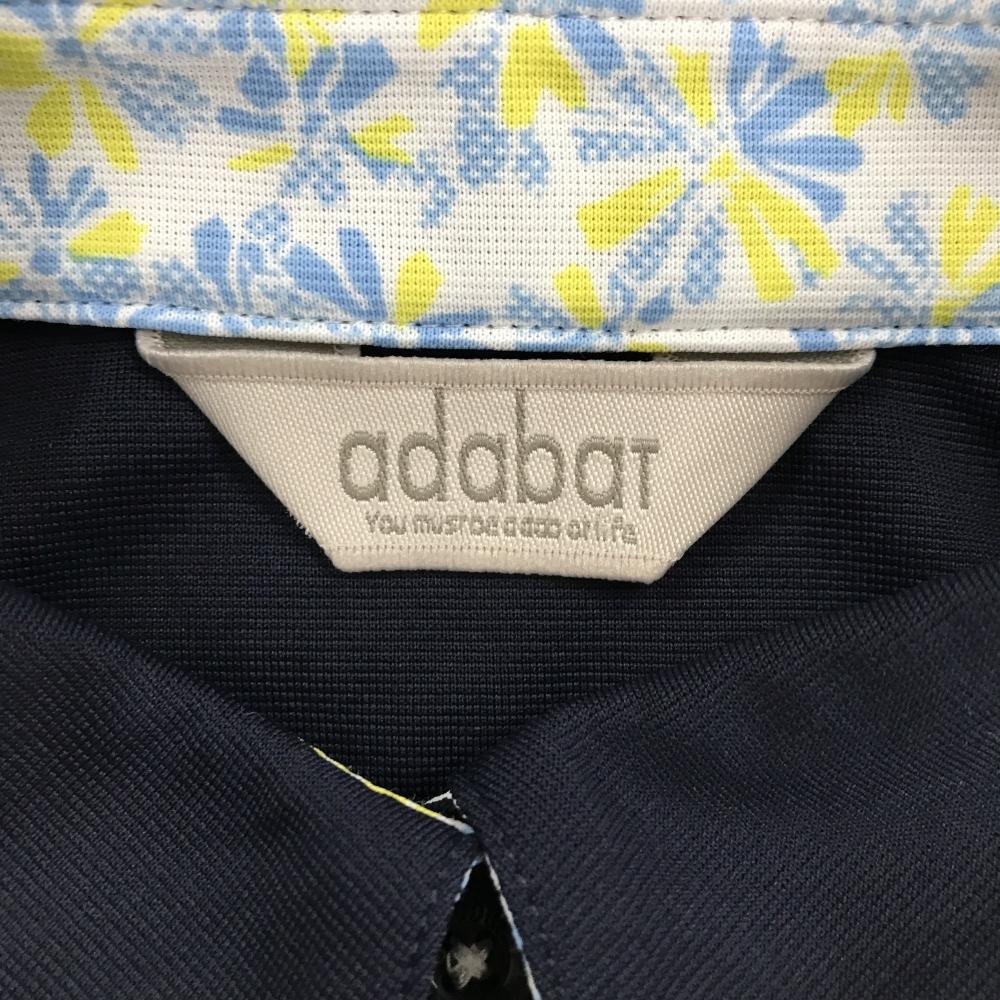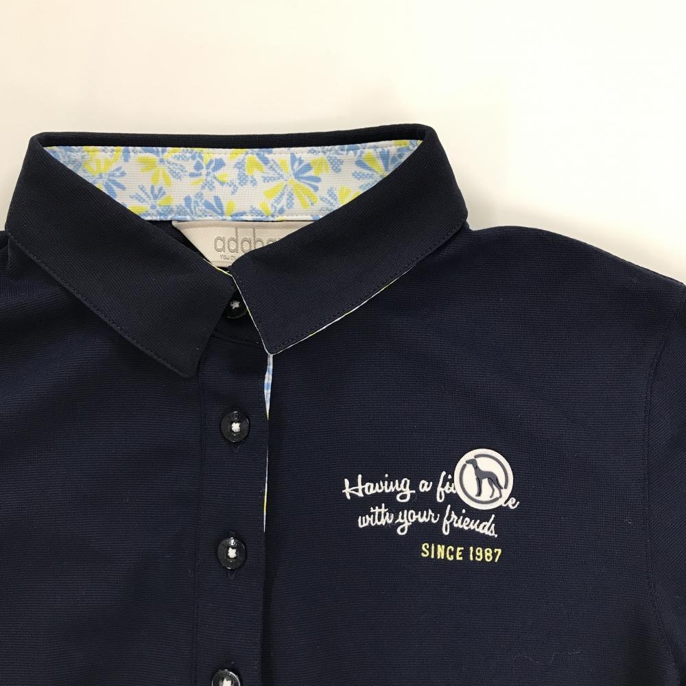 【超美品】アダバット 半袖ポロシャツ ネイビー×白 胸ロゴ刺しゅう レディース 36(S) ゴルフウェア adabat