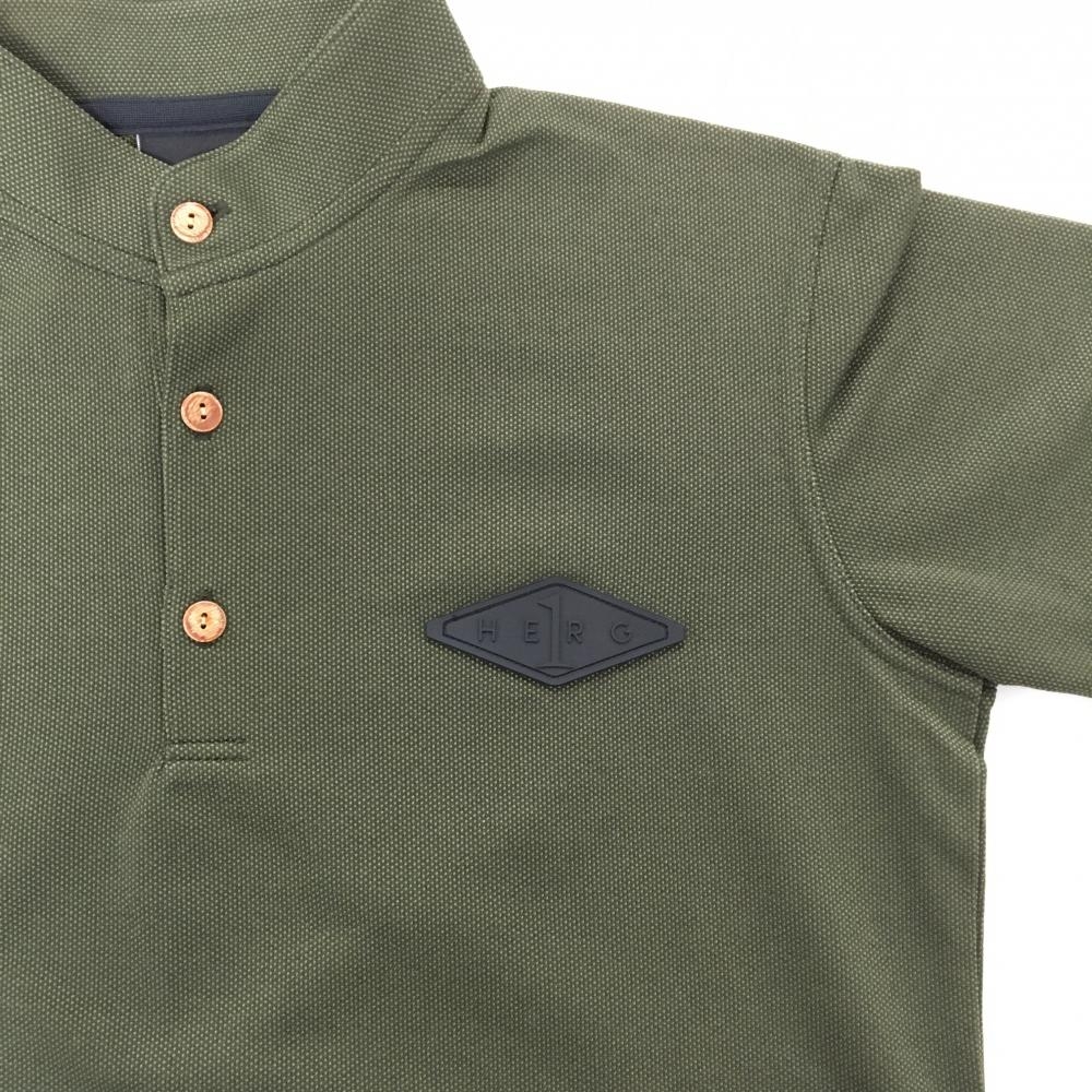 【超美品】エルグワン 半袖ポロシャツ グリーン スタンドカラー シリコンワッペン レディース WS ゴルフウェア HERG1