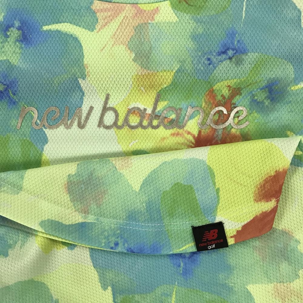 【超美品】ニューバランスゴルフ 半袖ハイネックシャツ イエロー系×ライトブルー 花柄風 レディース 0(S) ゴルフウェア New Balance
