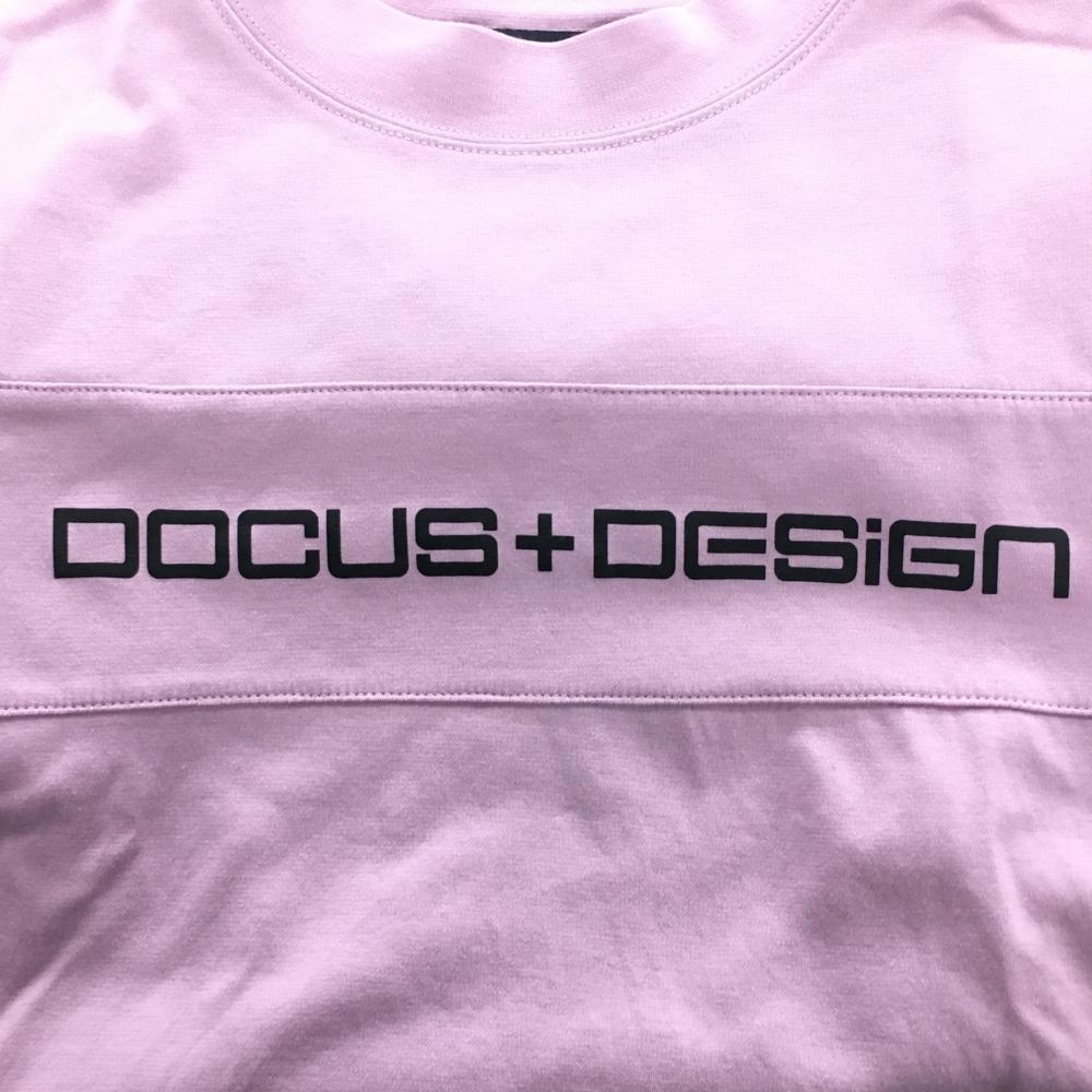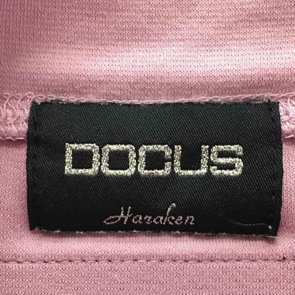 【美品】ドゥーカス Tシャツ ピンク系×黒 ロゴプリント 裾リブ レディース S ゴルフウェア 2024年モデル Docus