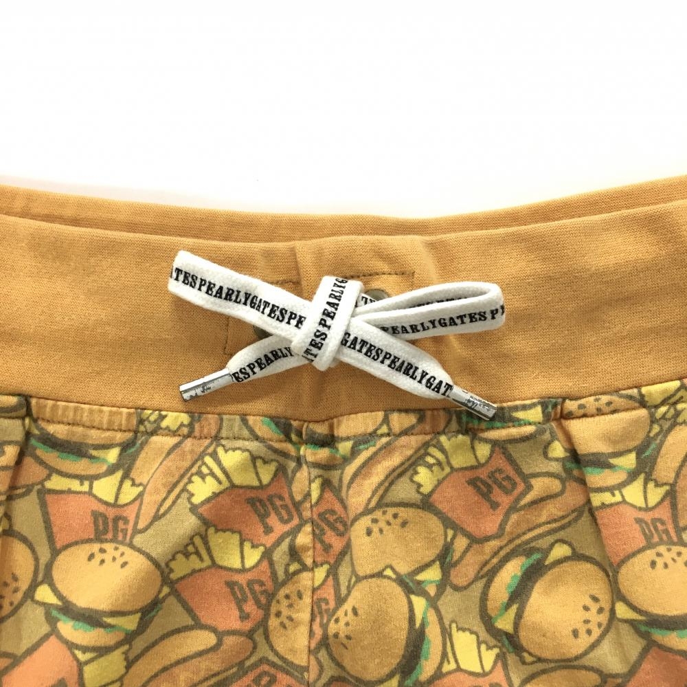 パーリーゲイツ ショートパンツ オレンジ×ブラウン ハンバーガー柄 ウエストゴム レディース 1(M) ゴルフウェア PEARLY GATES