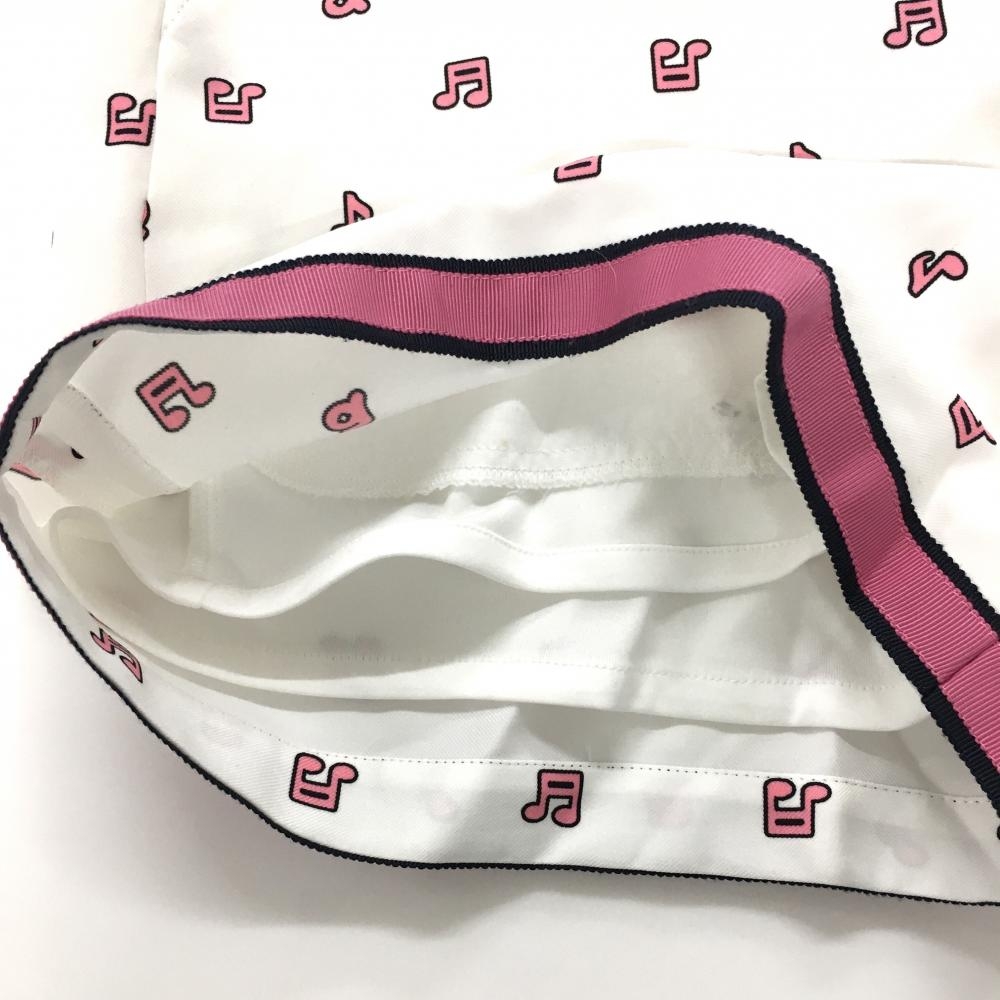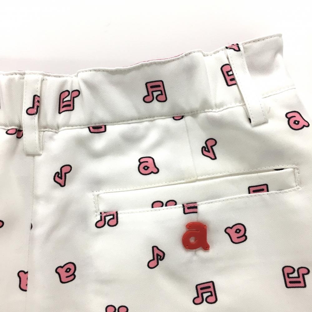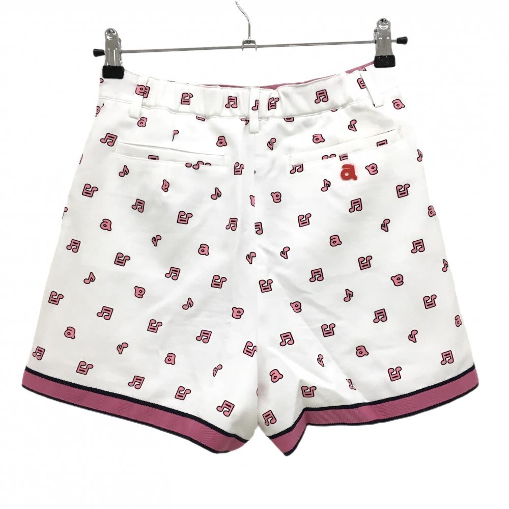 【超美品】アルチビオ ショートパンツ 白×ピンク 音符・ロゴ総柄 裏地付 ウエスト一部ゴム レディース 36(S) ゴルフウェア archivio