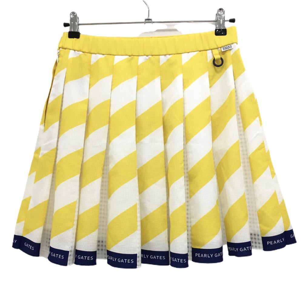 【美品】パーリーゲイツ スカート イエロー×白 総柄 一部レース調 裾ロゴ レディース 1(M) ゴルフウェア PEARLY GATES